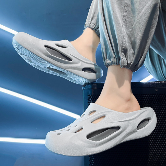 嚴選男涼拖EVA踩屎感洞洞鞋厚底增高沙灘鞋戶外防滑透氣套腳涼鞋