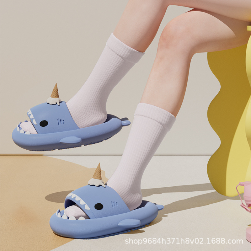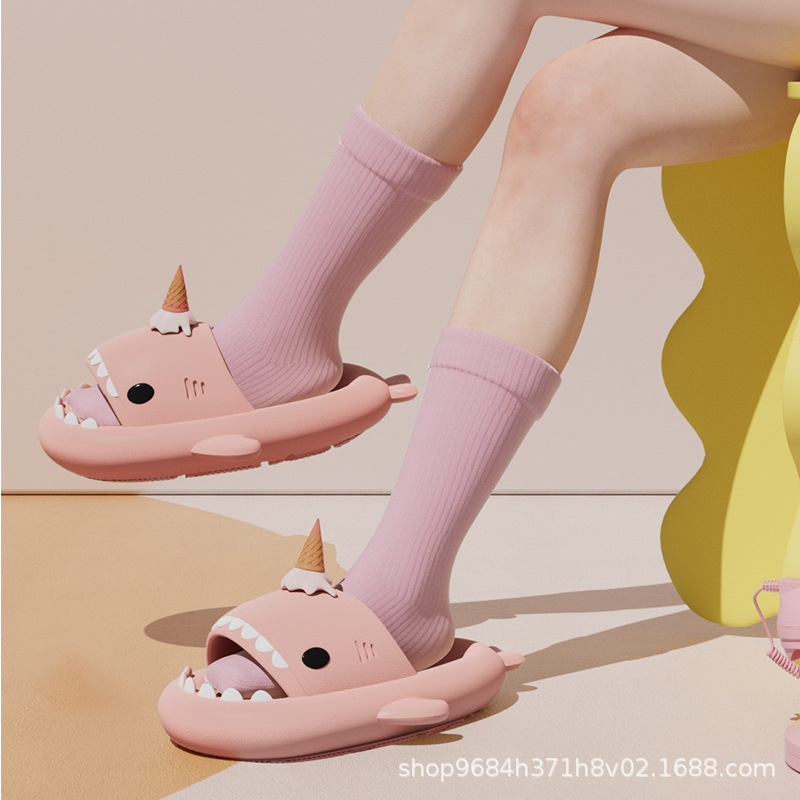 冰激淩鯊魚拖鞋夏季網紅ins爆款厚底EVA抗菌男女情侶款涼拖鞋