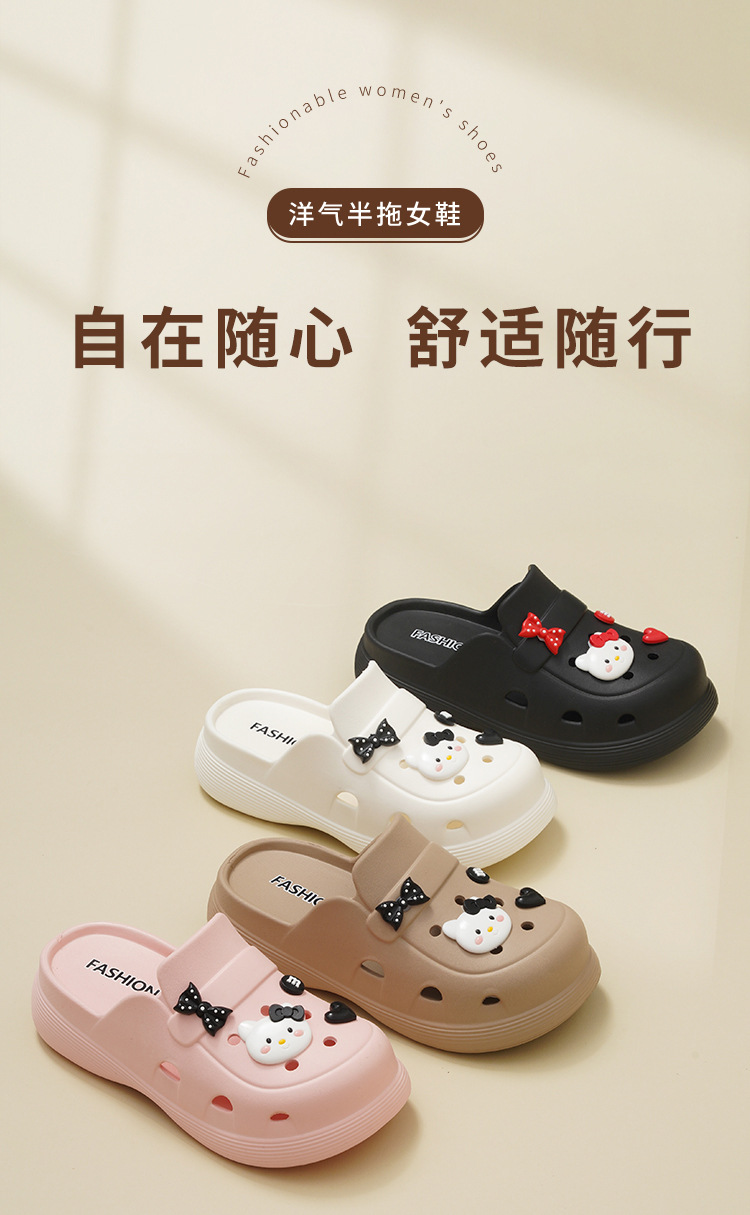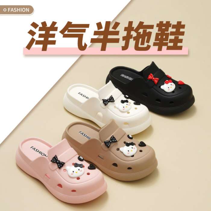 踩屎感洞洞鞋女夏季外穿2025新款厚底透氣防滑防臭包頭涼拖鞋
