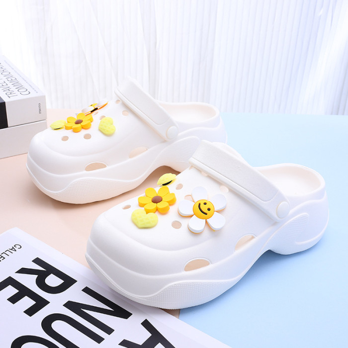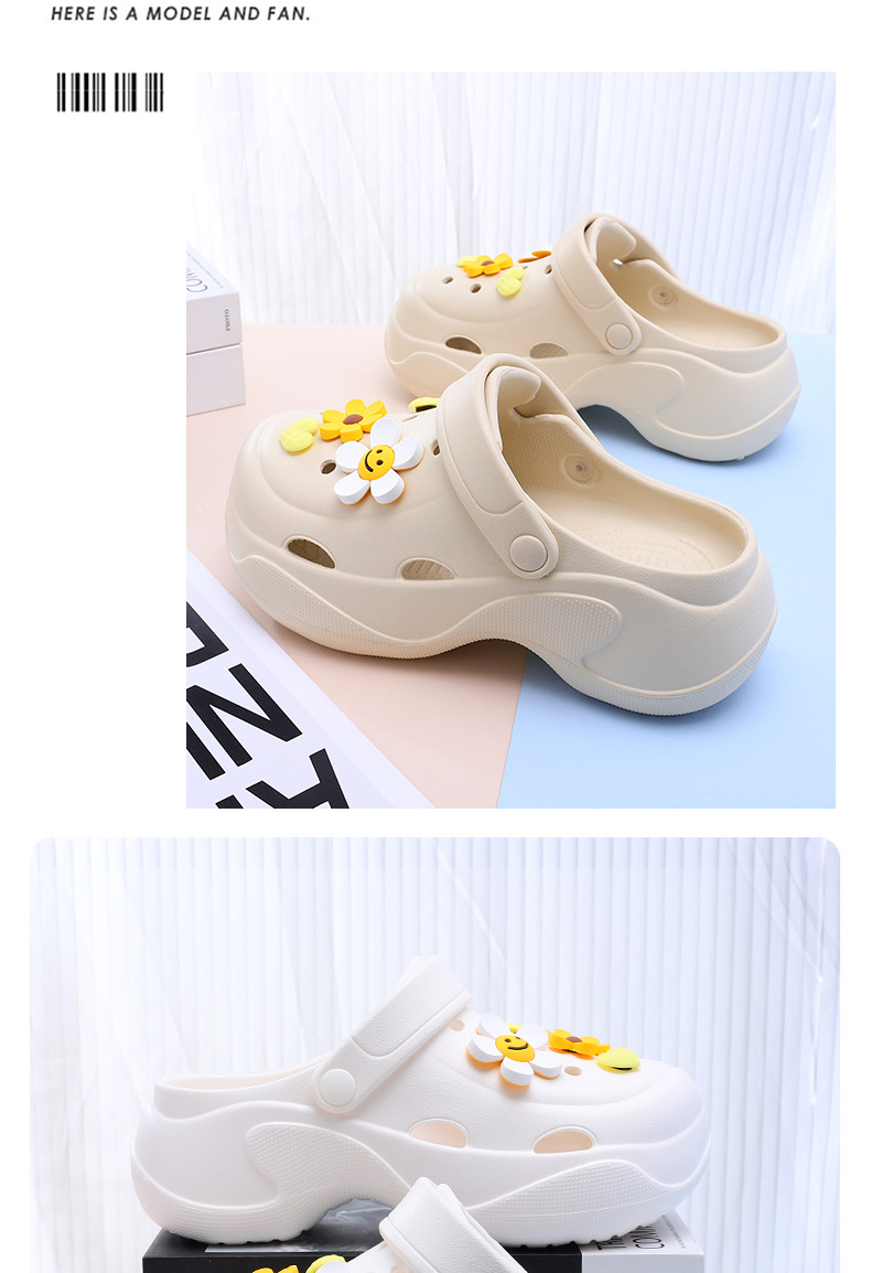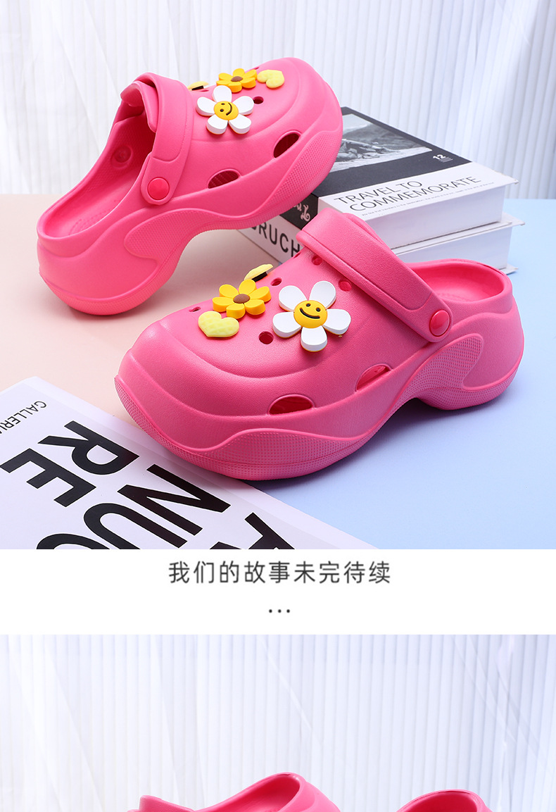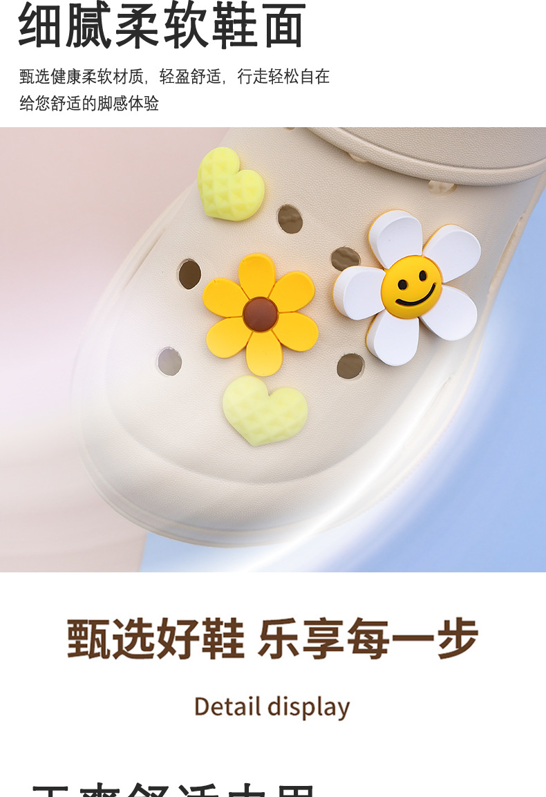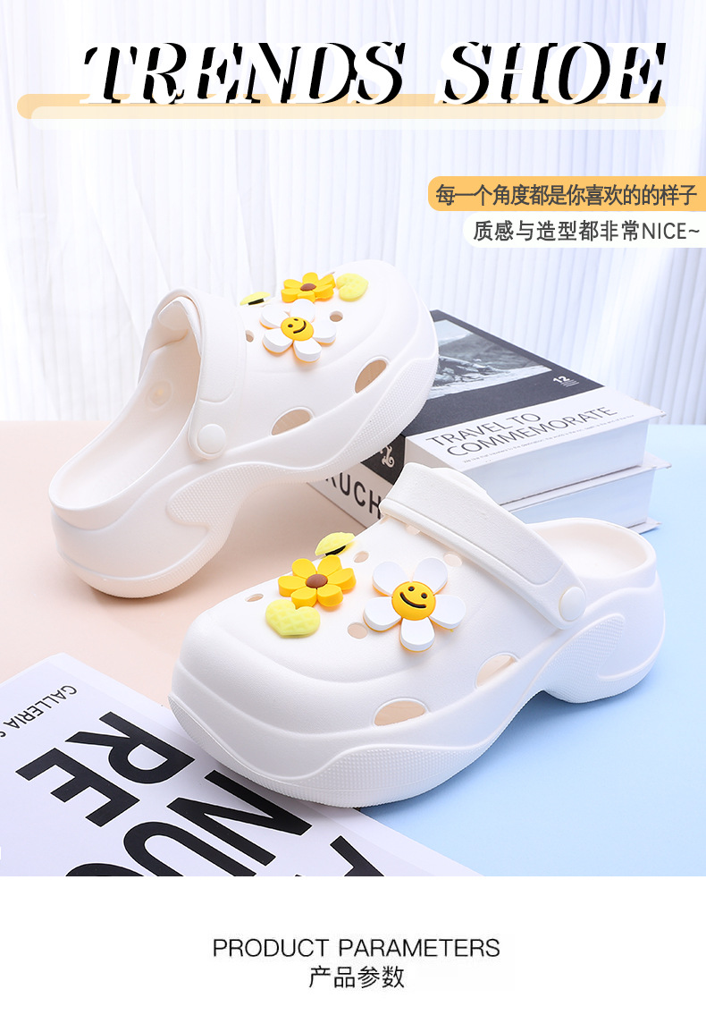 新款黃色太陽花洞洞鞋女鞋花笑臉花可愛卡通鞋可拆卸diy沙灘涼拖