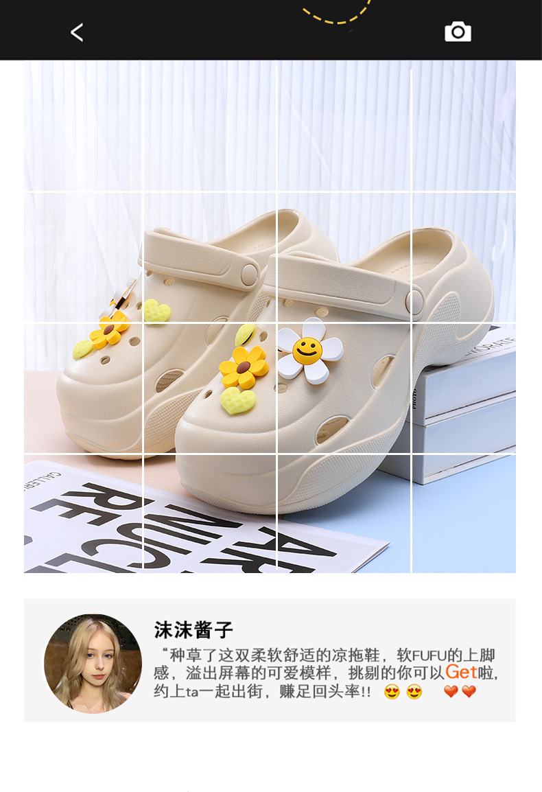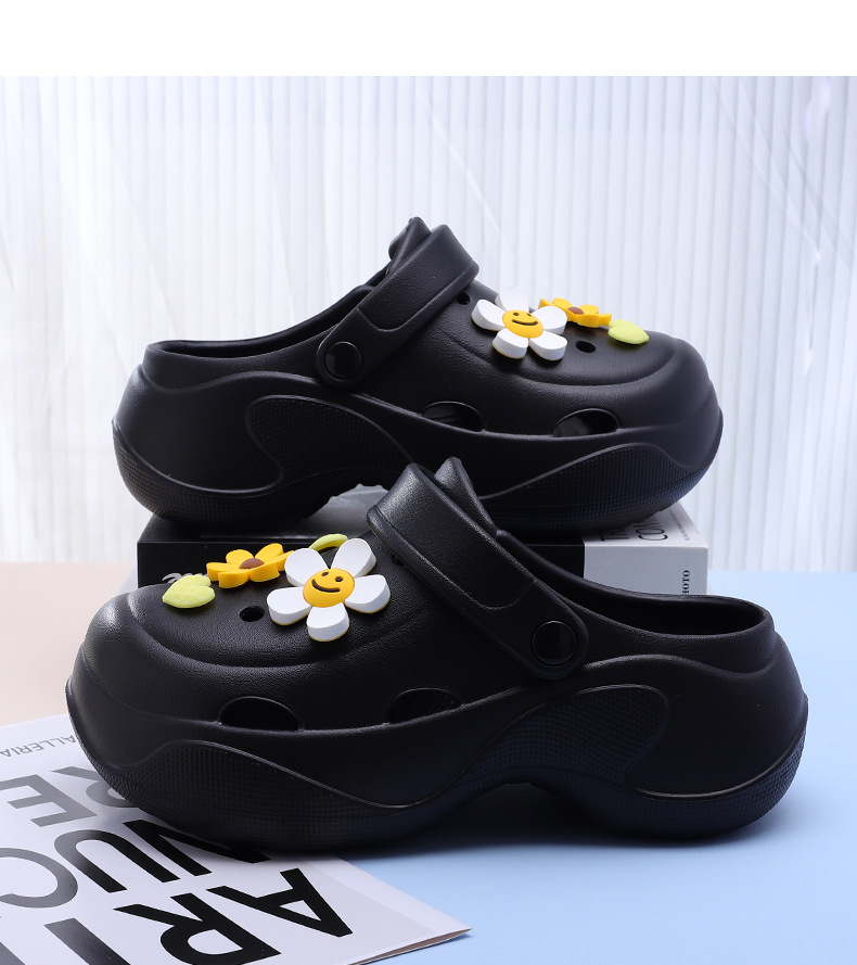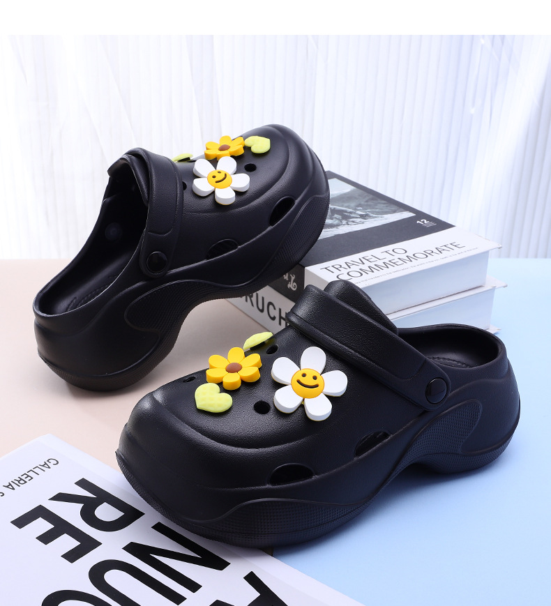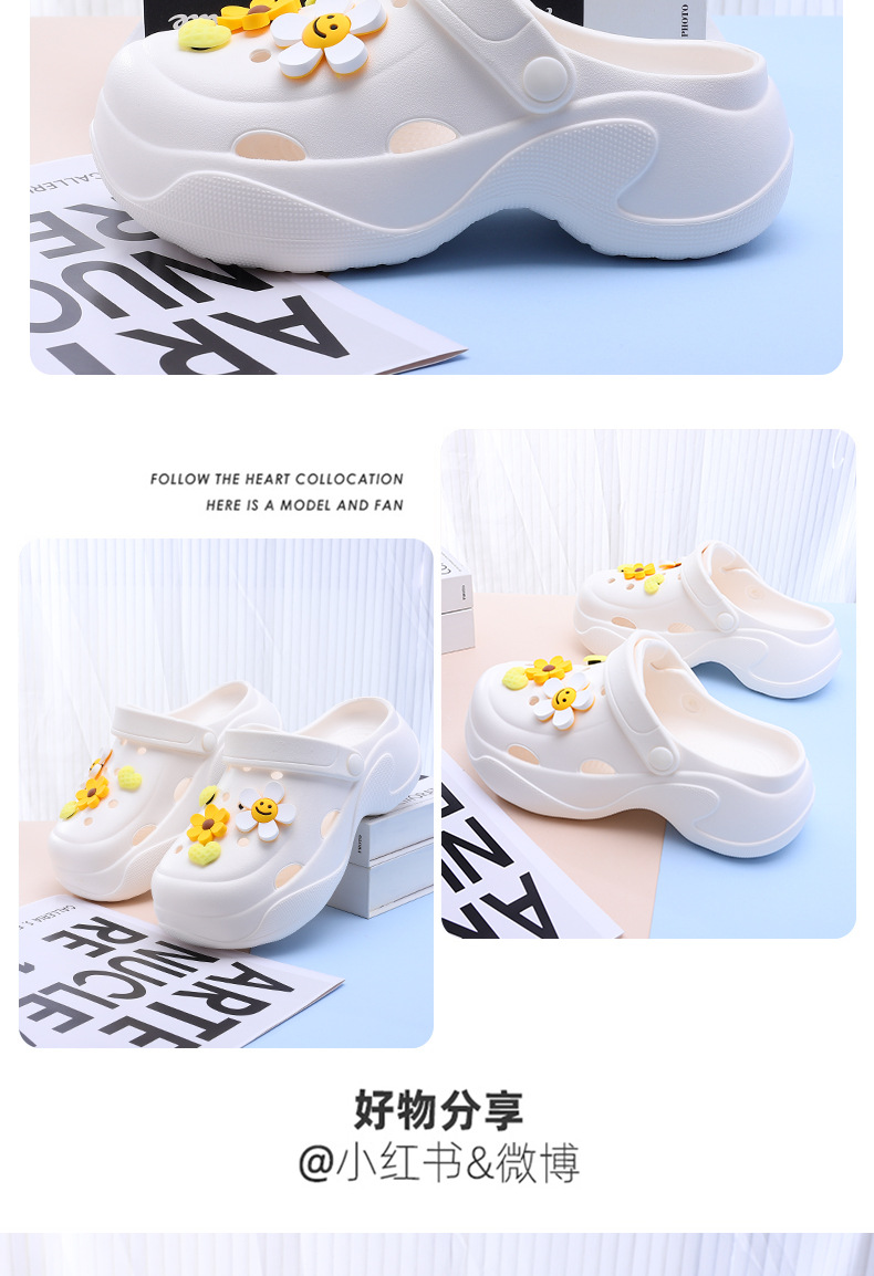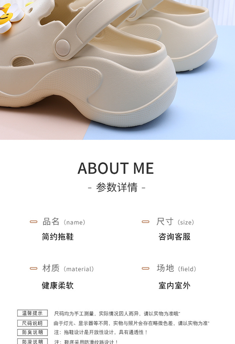 新款黃色太陽花洞洞鞋女鞋花笑臉花可愛卡通鞋可拆卸diy沙灘涼拖