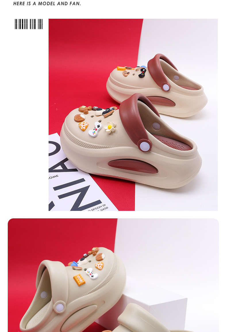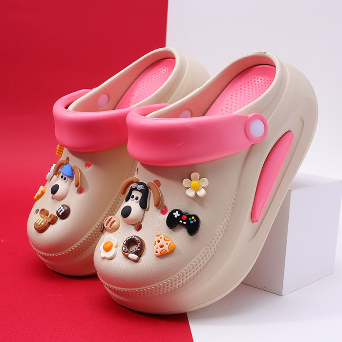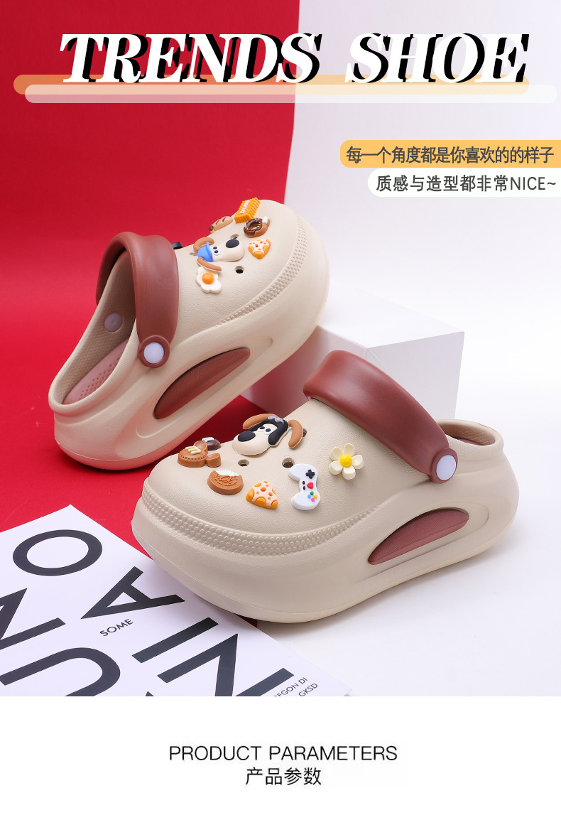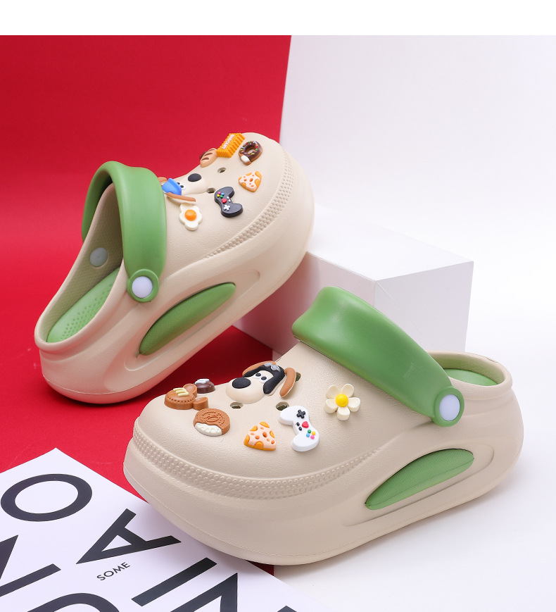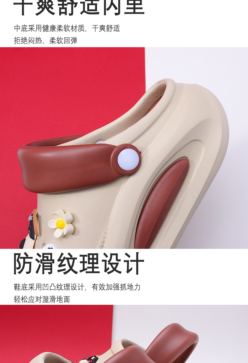 可拆卸厚底洞洞鞋女夏新款居家防滑增高沙灘踩屎感卡通涼拖鞋外穿