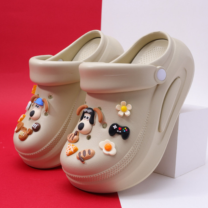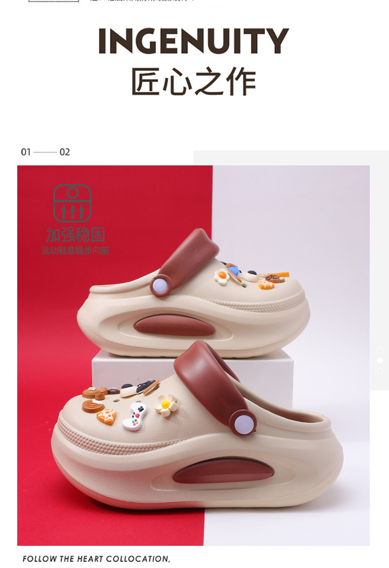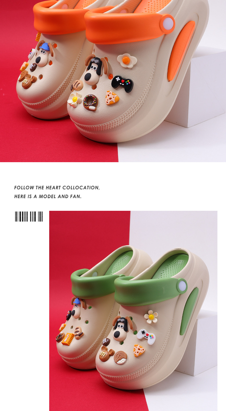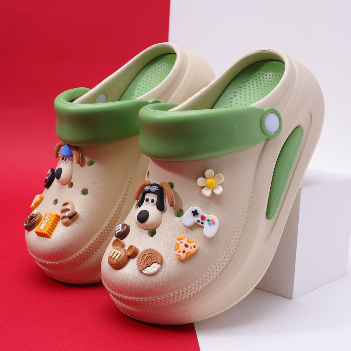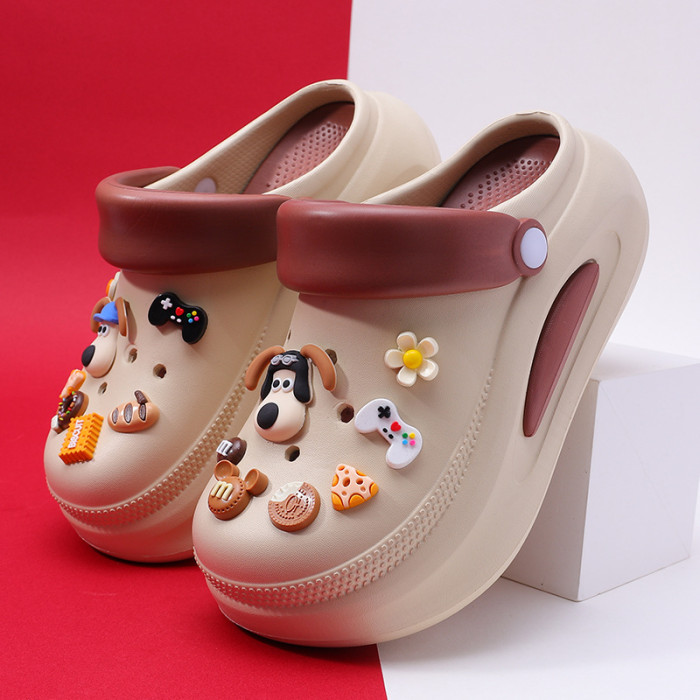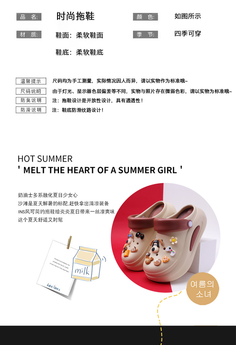 可拆卸厚底洞洞鞋女夏新款居家防滑增高沙灘踩屎感卡通涼拖鞋外穿