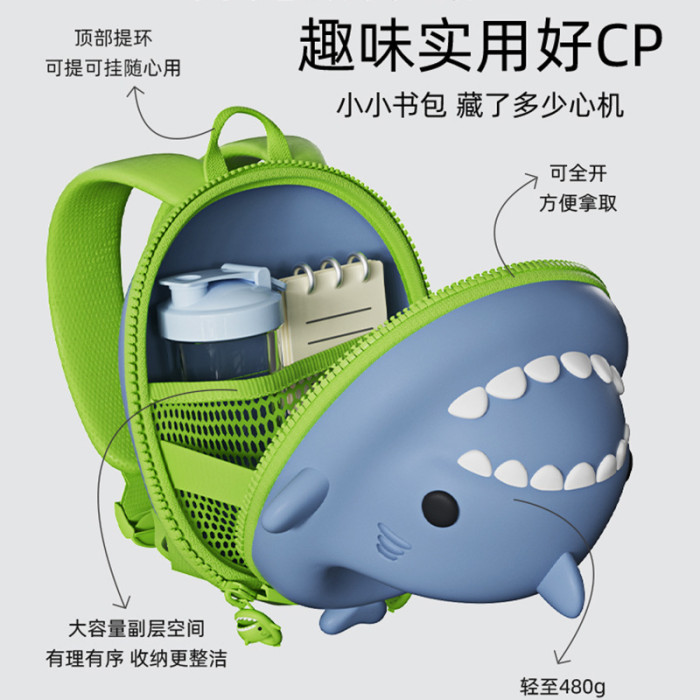 小鯊魚兒童書包男卡通防水輕便幼兒園雙肩包3-6年小學生女童護脊