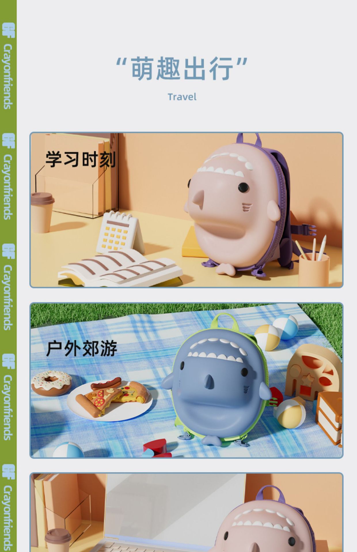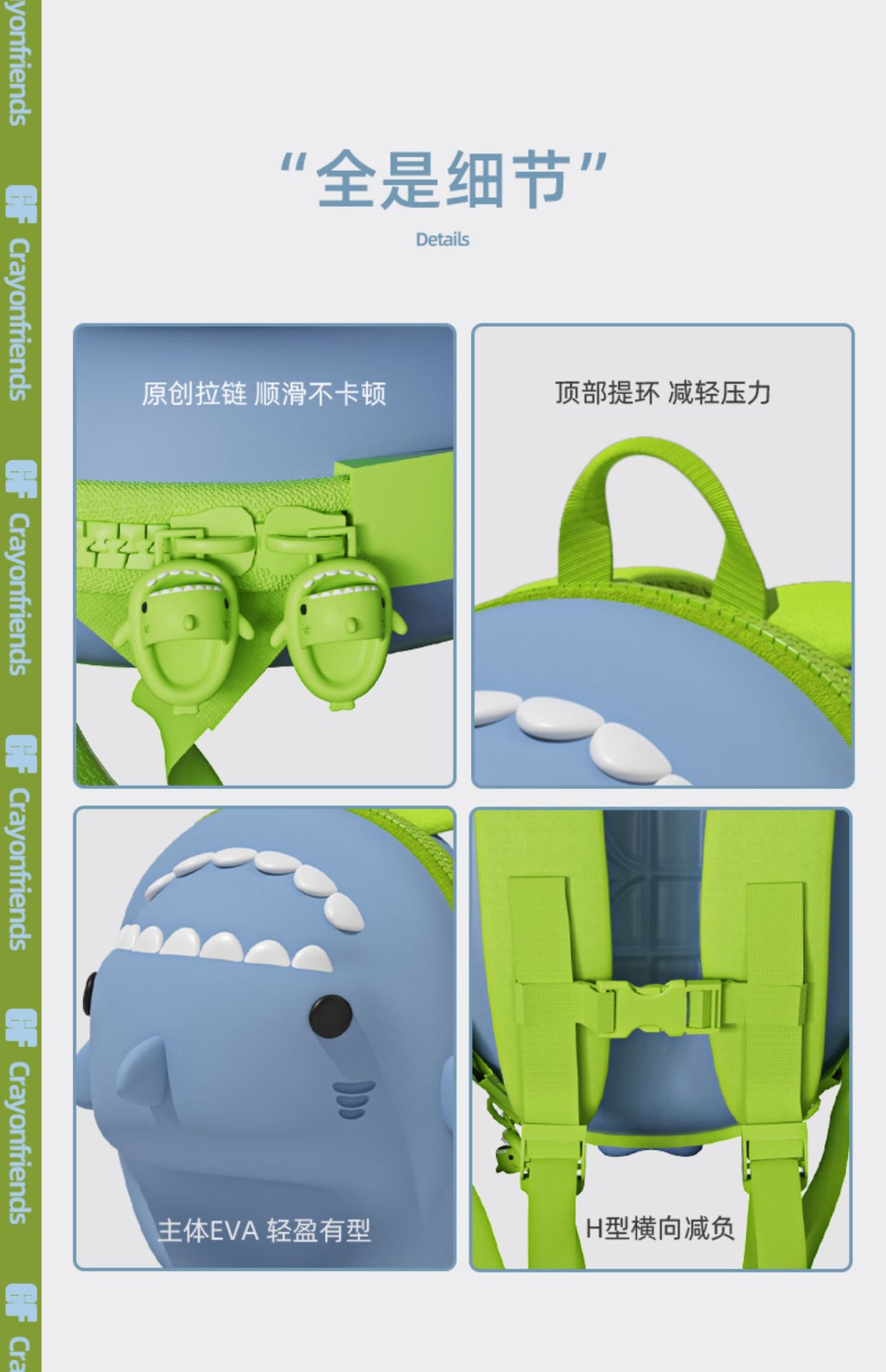 小鯊包成人款和兒童款是肩帶長短的區別,外觀尺寸是一樣的哦!