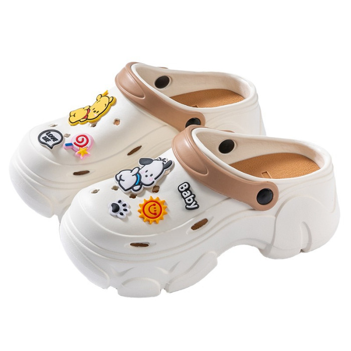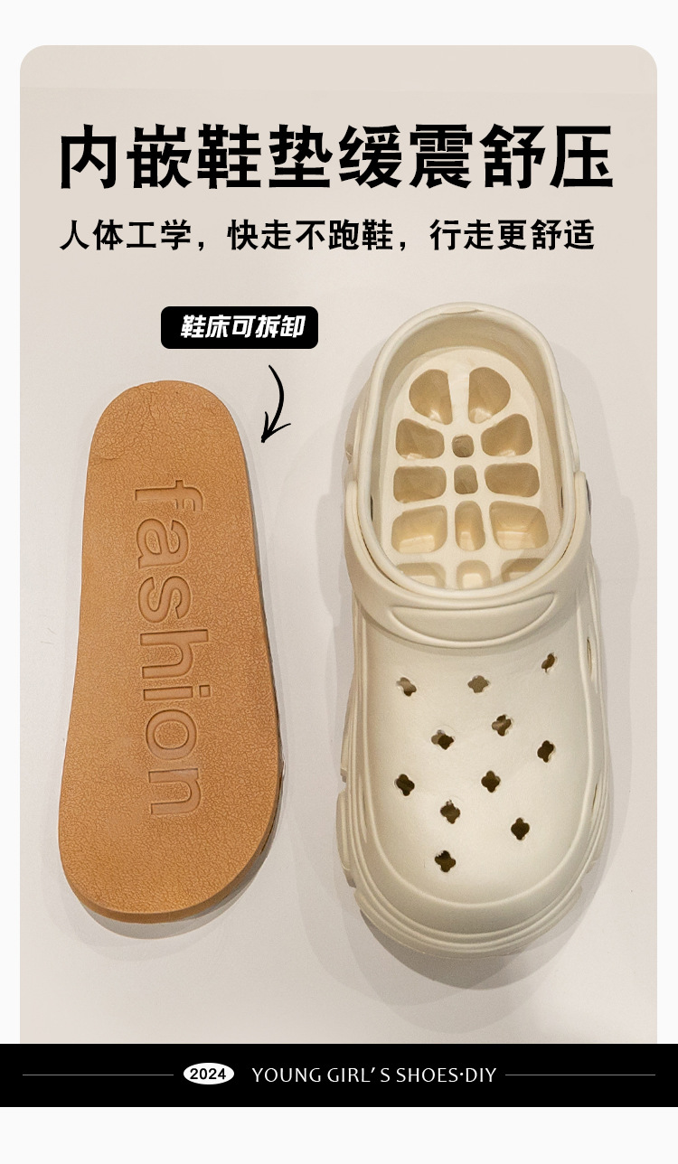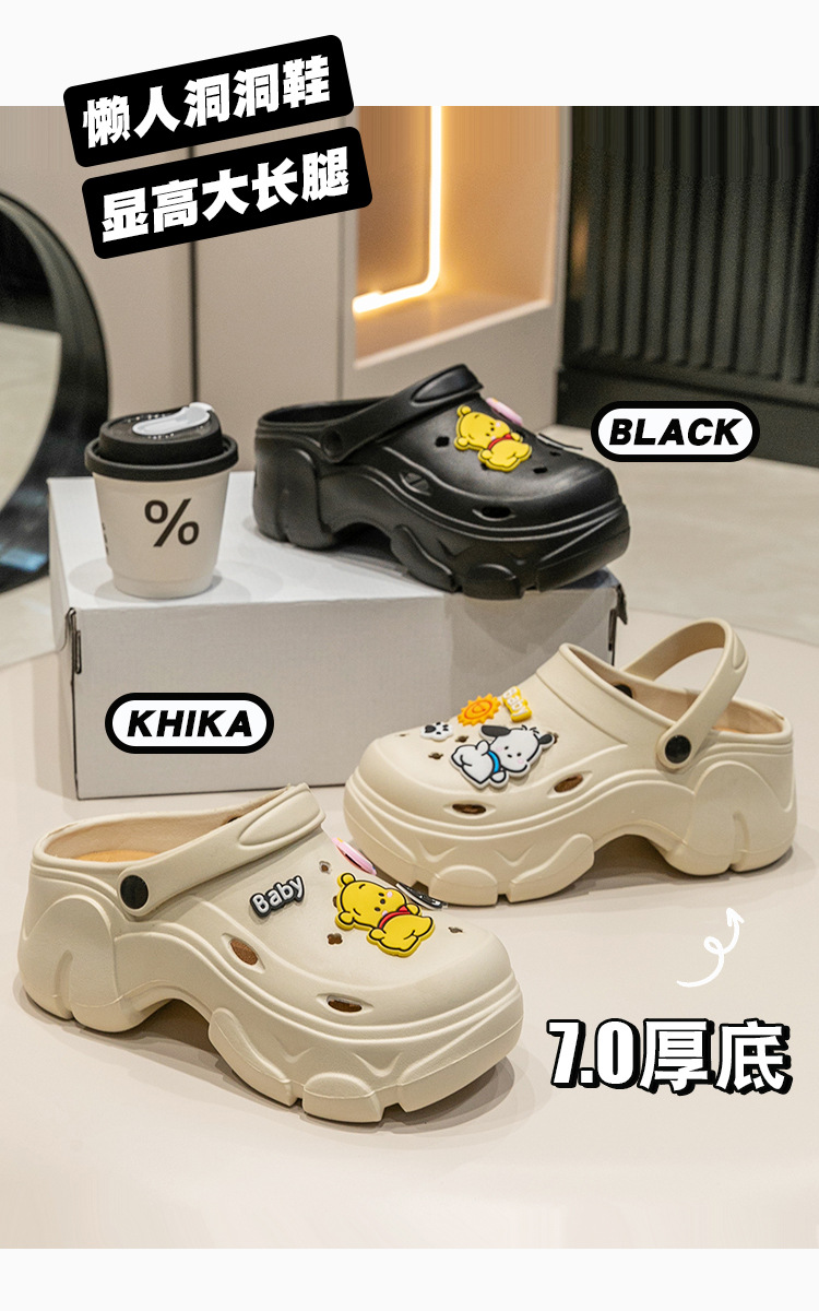 厚底洞洞鞋女夏季新款外穿海邊沙灘增高防滑松糕包頭涼鞋女款