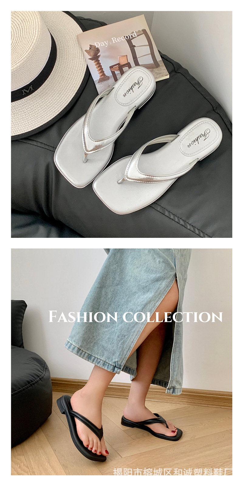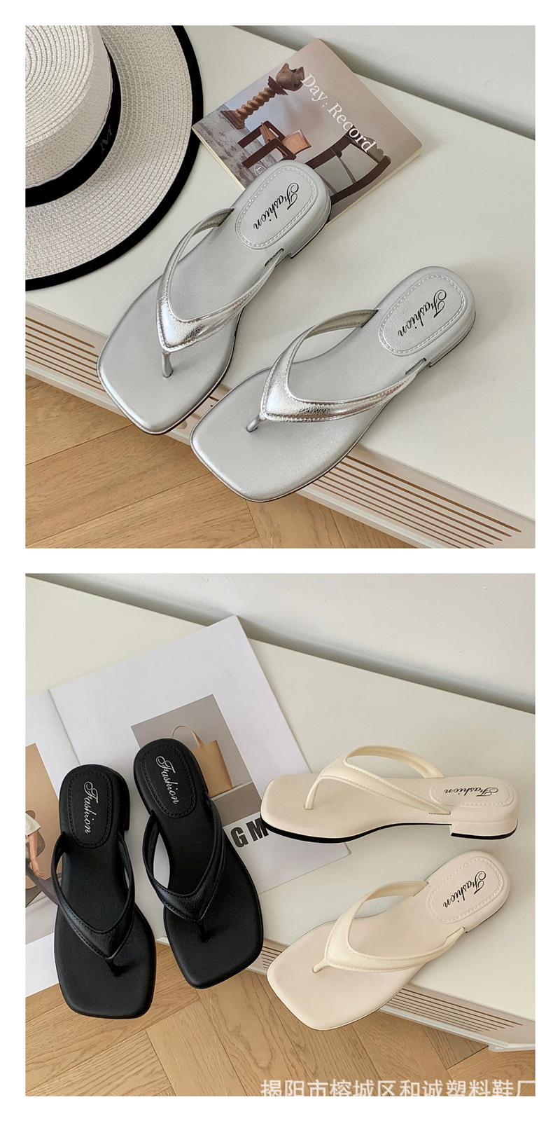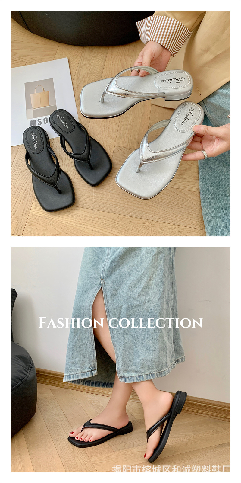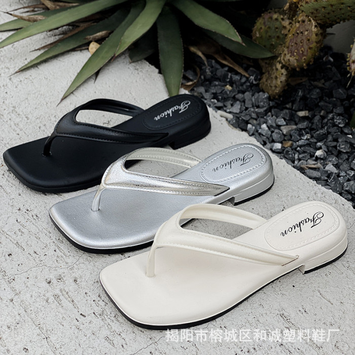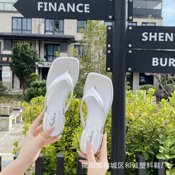 銀色女款拖鞋人字拖女松糕坡跟潮時尚復古夏季仙女風氣質涼拖鞋女