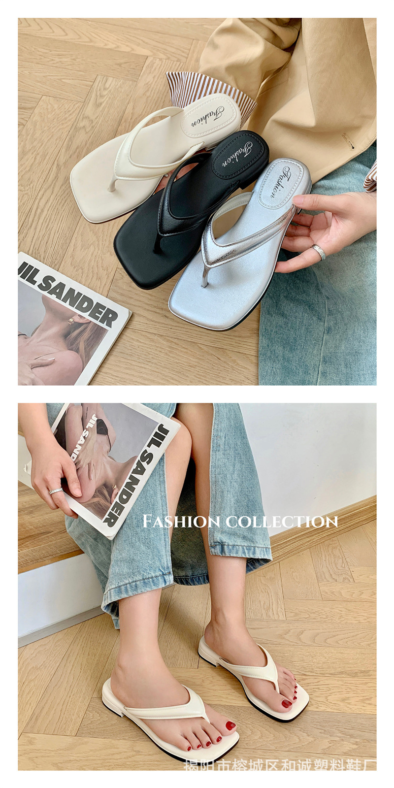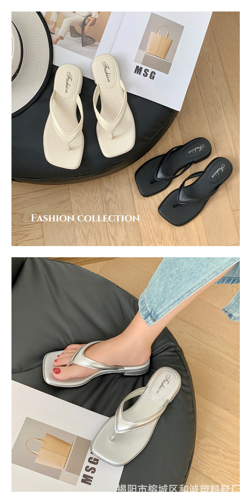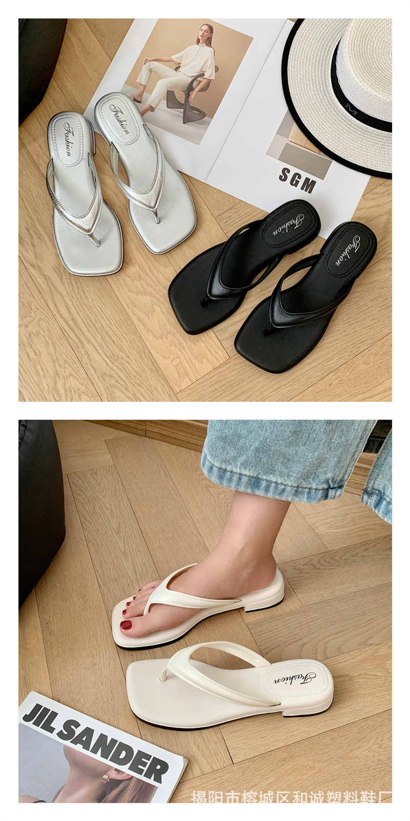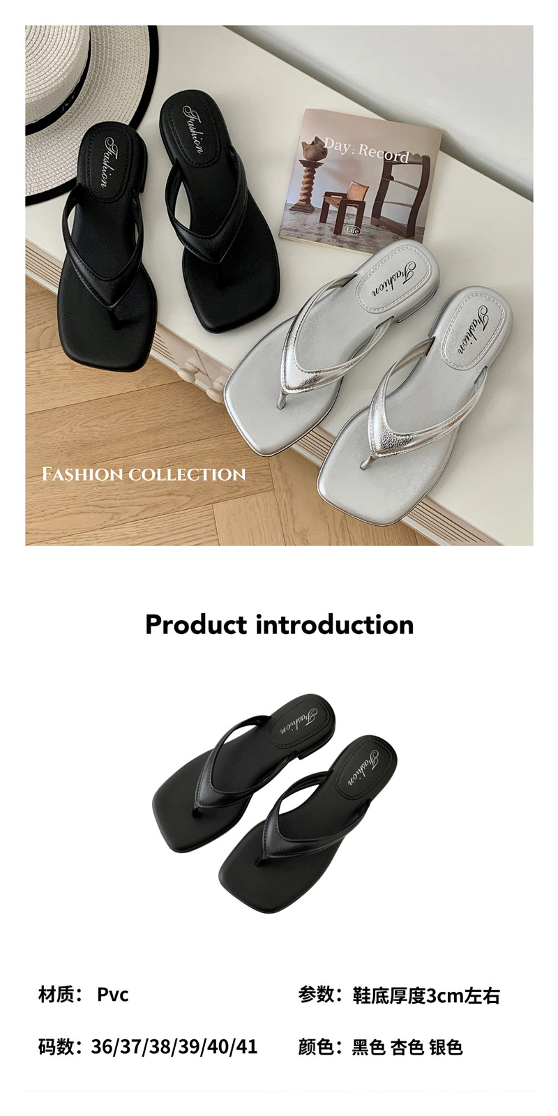 銀色女款拖鞋人字拖女松糕坡跟潮時尚復古夏季仙女風氣質涼拖鞋女