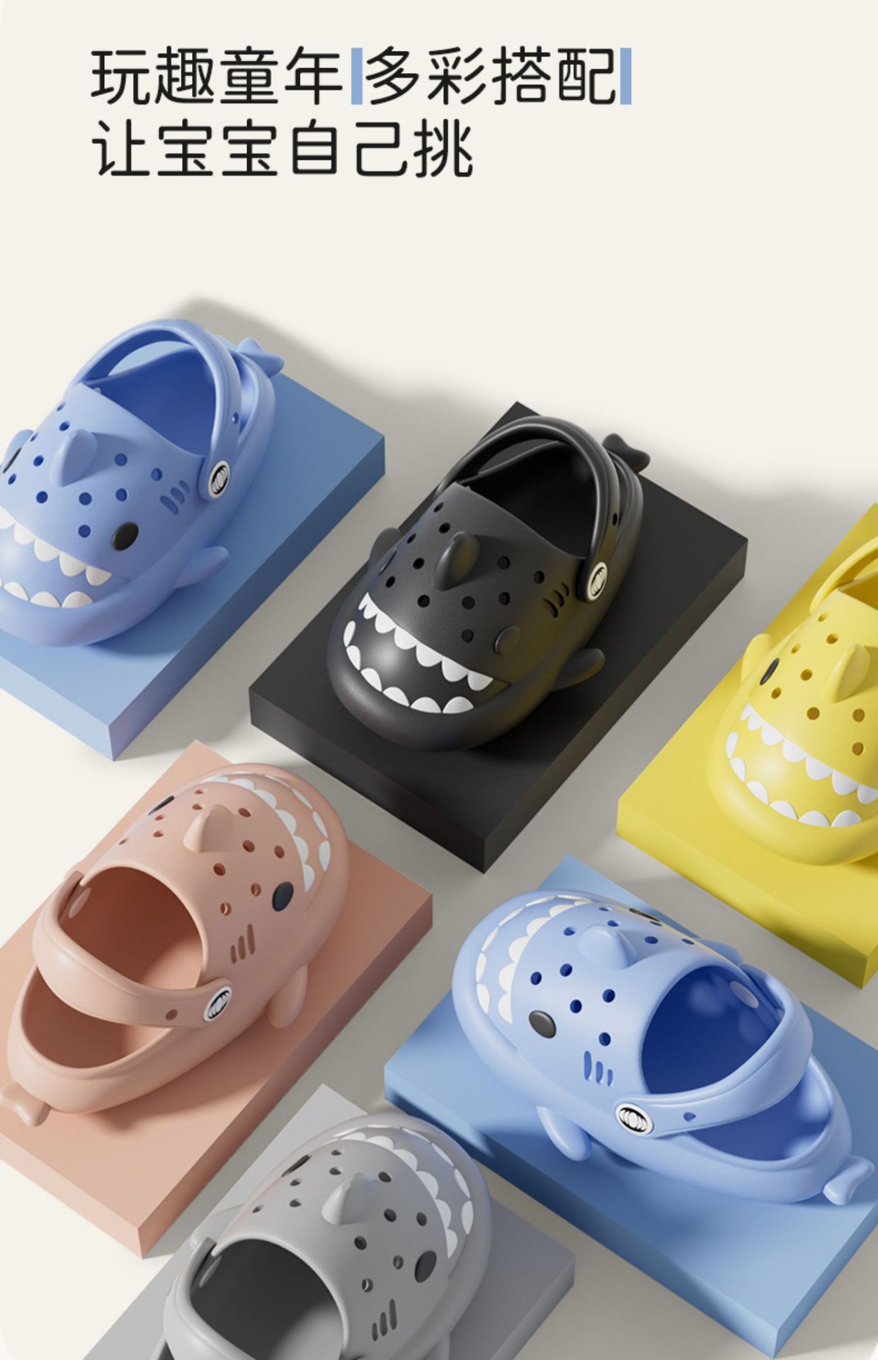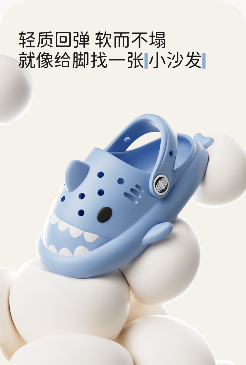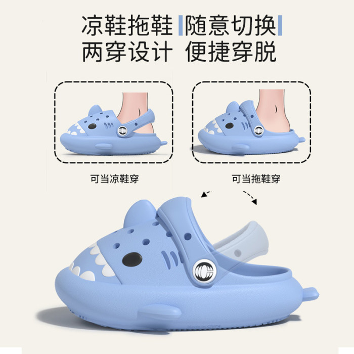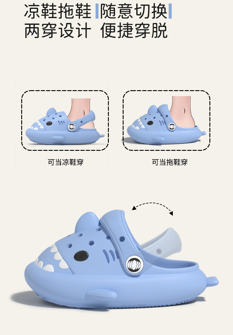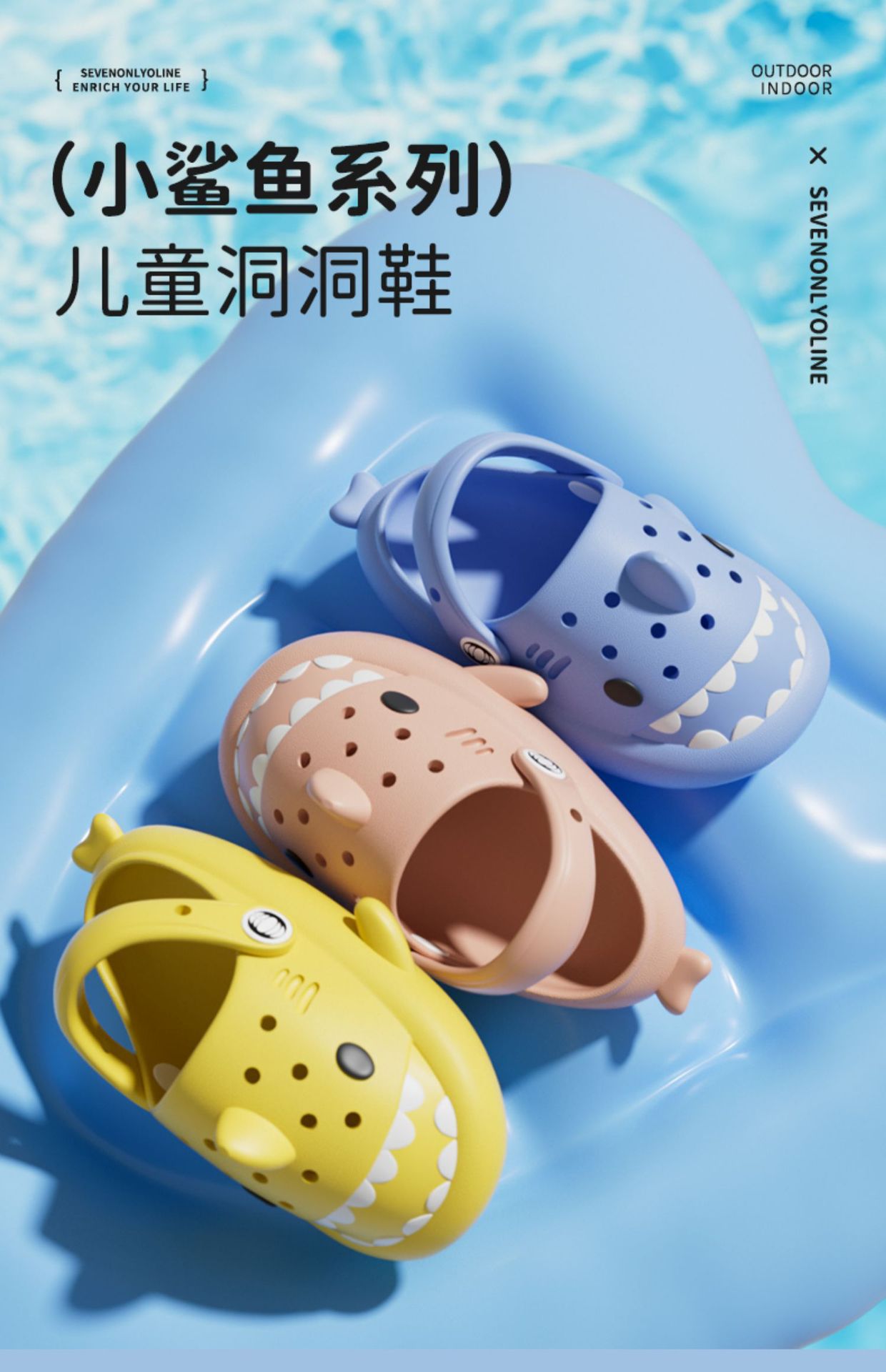 小鯊魚兒童洞洞鞋男夏季女童2024新款1-3嵗嬰幼兒小童寶寶涼拖鞋