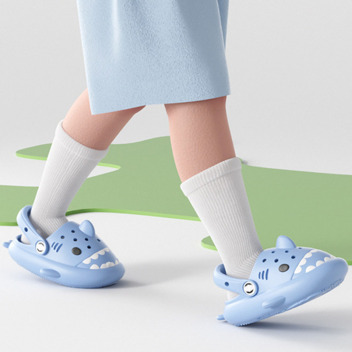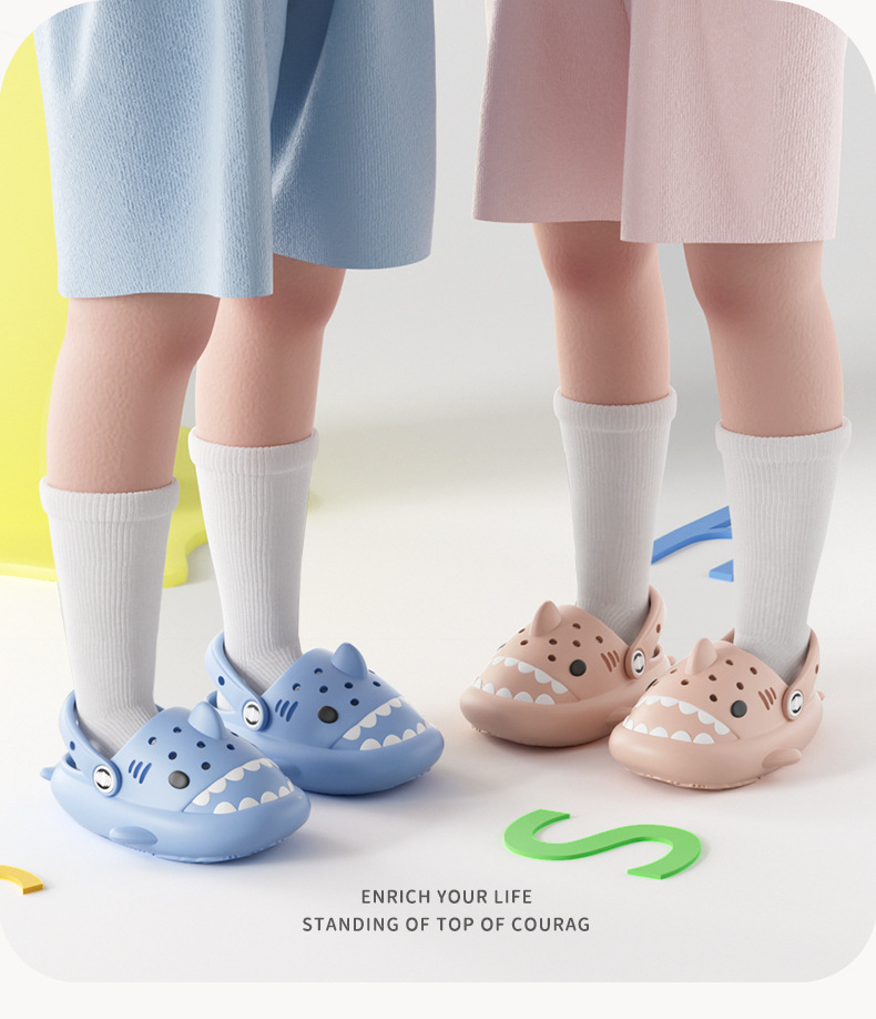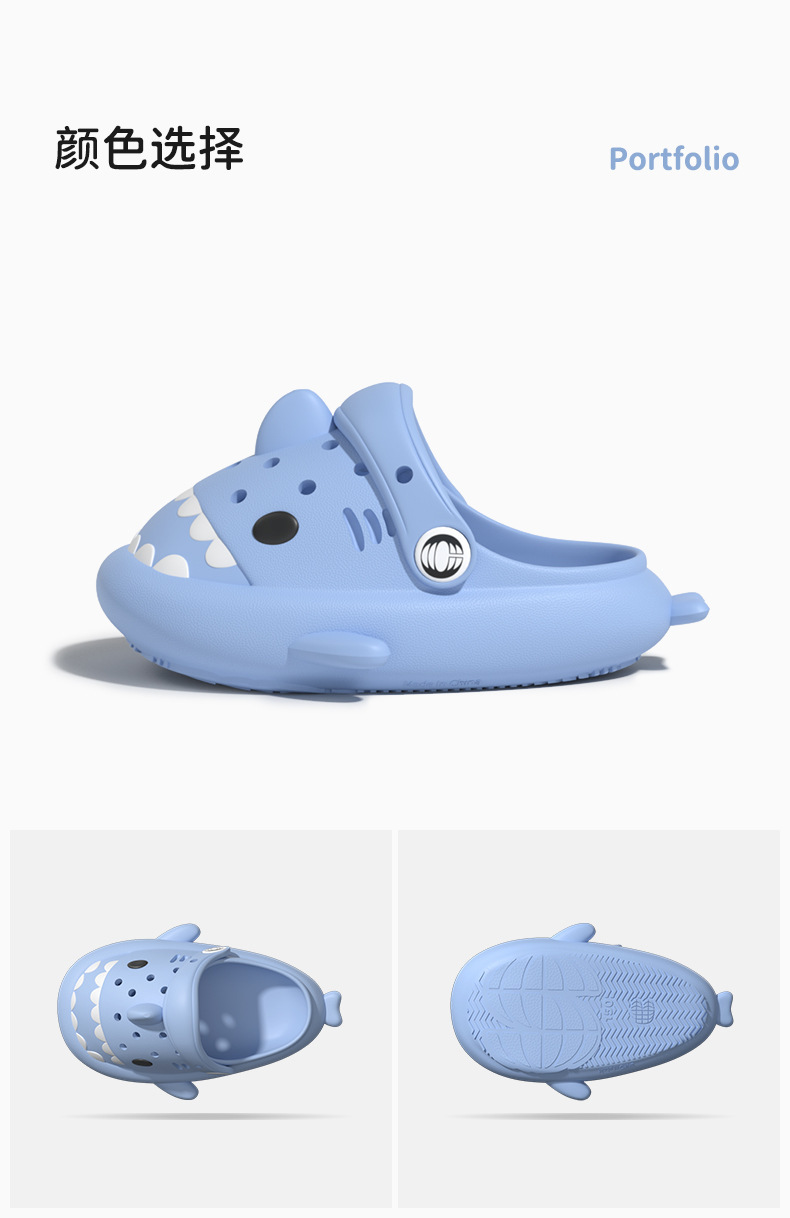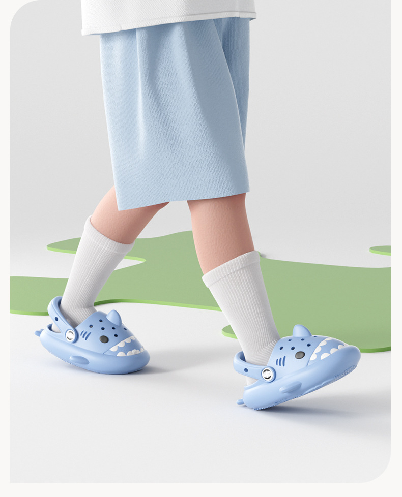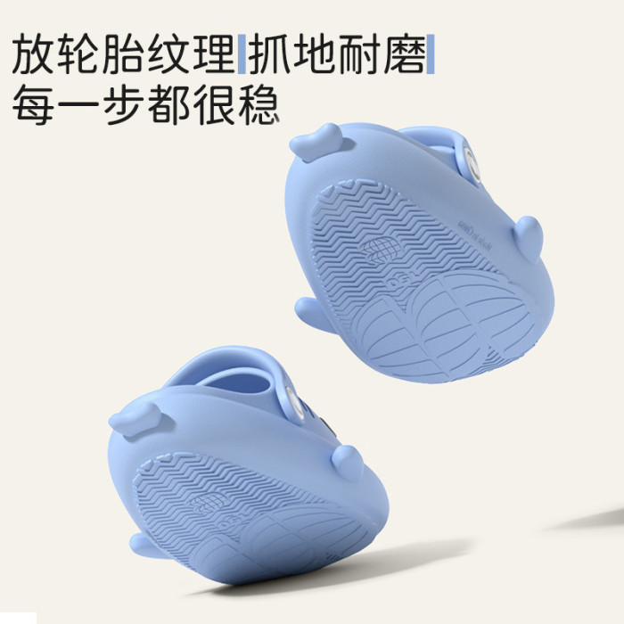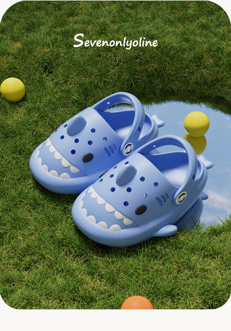 小鯊魚兒童洞洞鞋男夏季女童2024新款1-3嵗嬰幼兒小童寶寶涼拖鞋