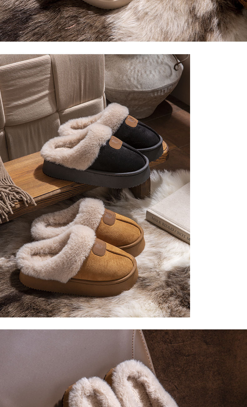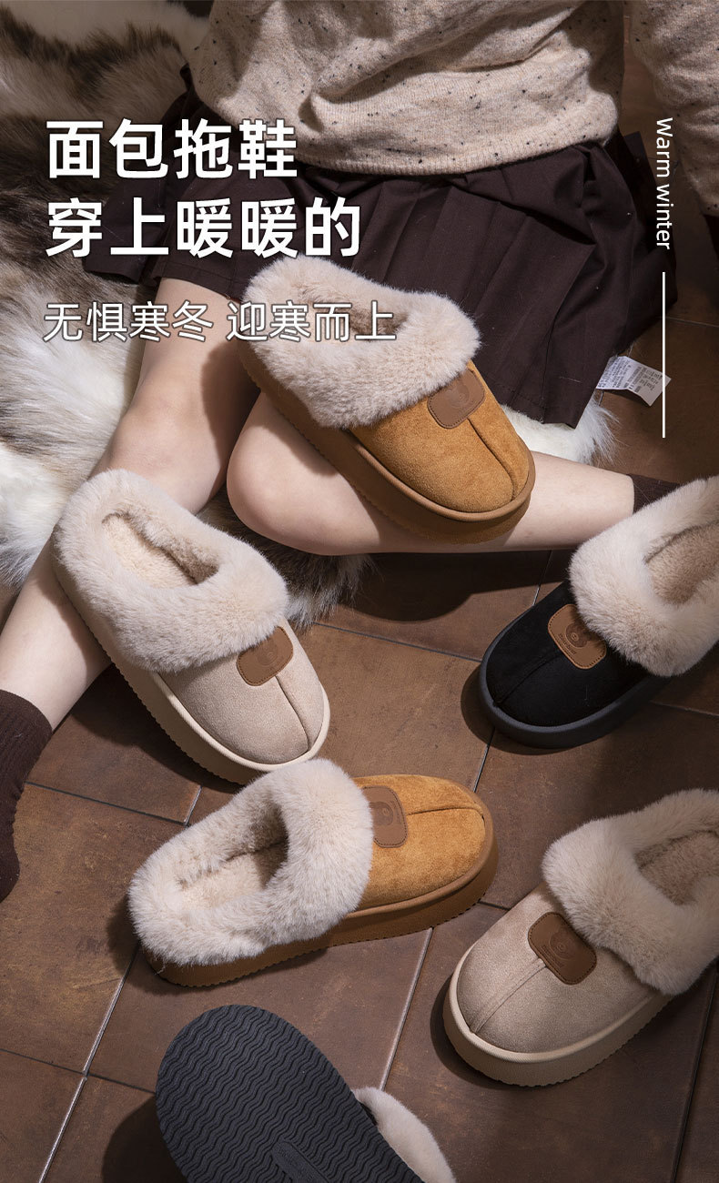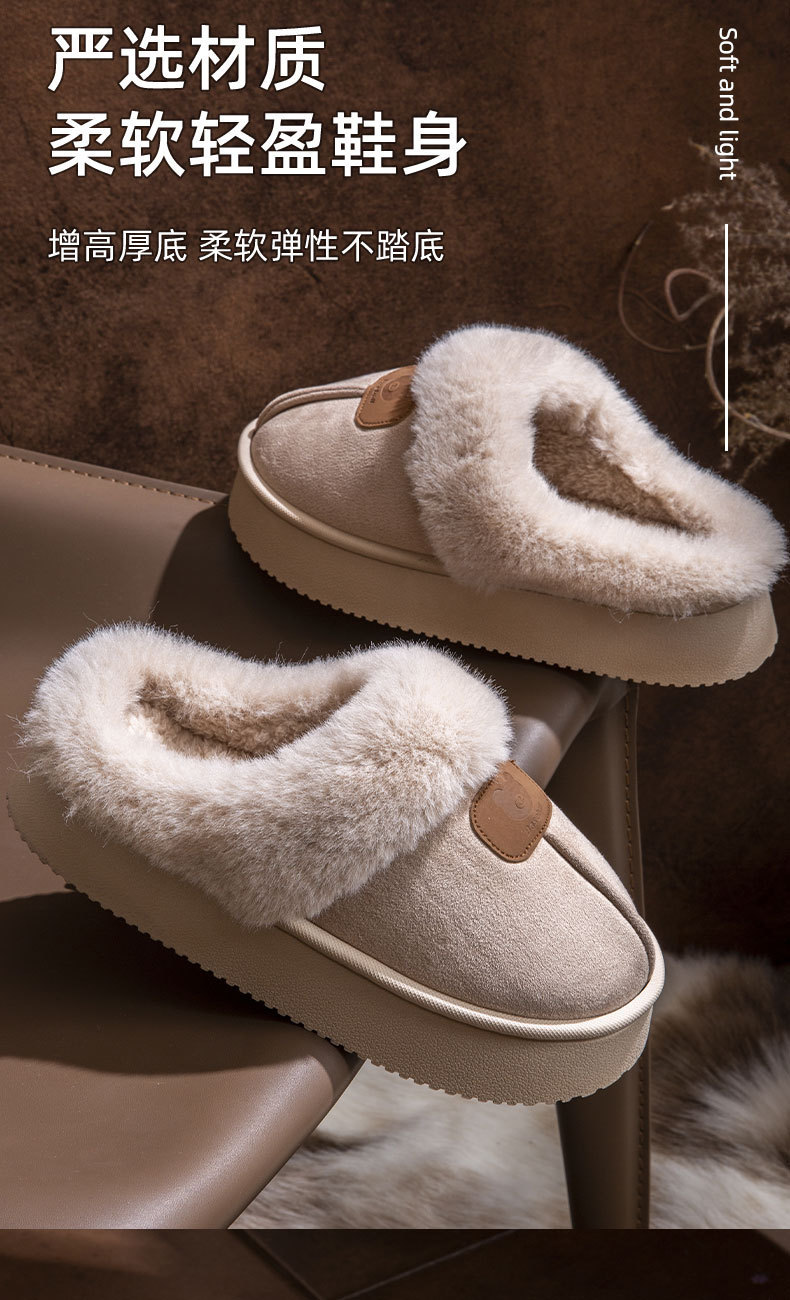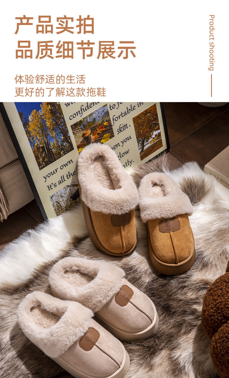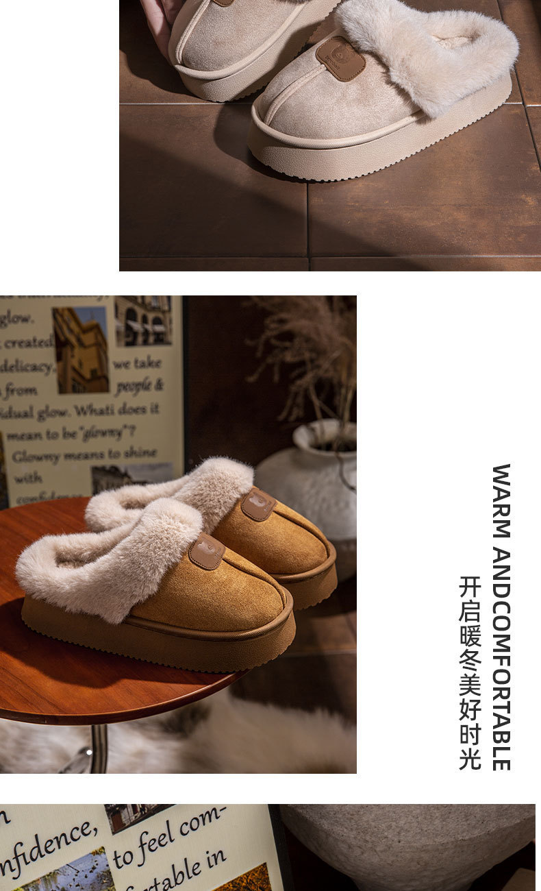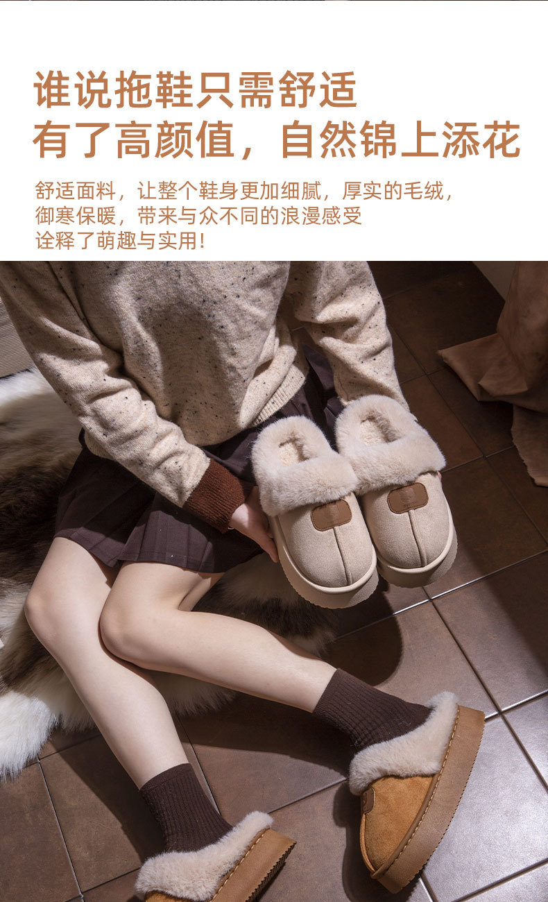 厚底毛毛拖鞋女2024新款加絨保暖桑坡村包頭星拖懶人一腳蹬棉拖鞋
