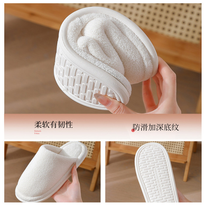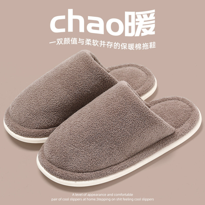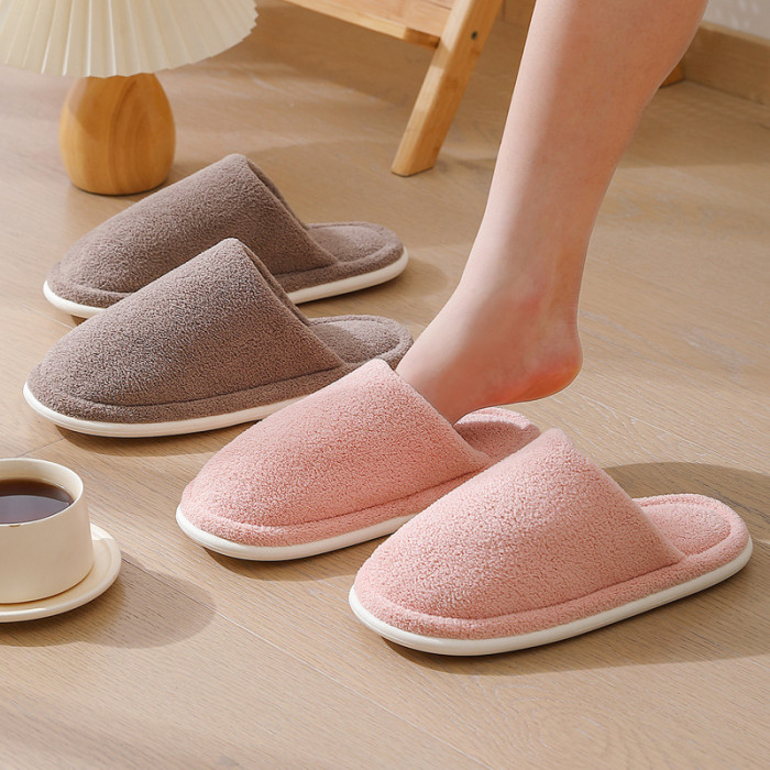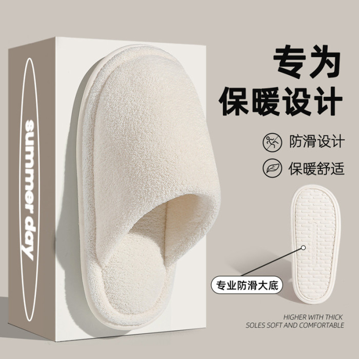 柔軟冬季毛毛拖鞋女士保暖毛絨簡約家居室內防滑秋季棉拖鞋男