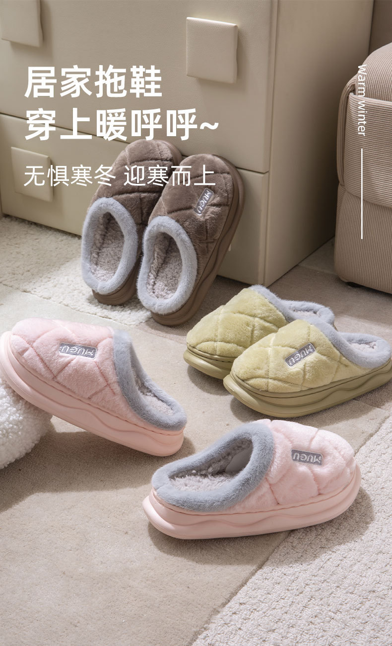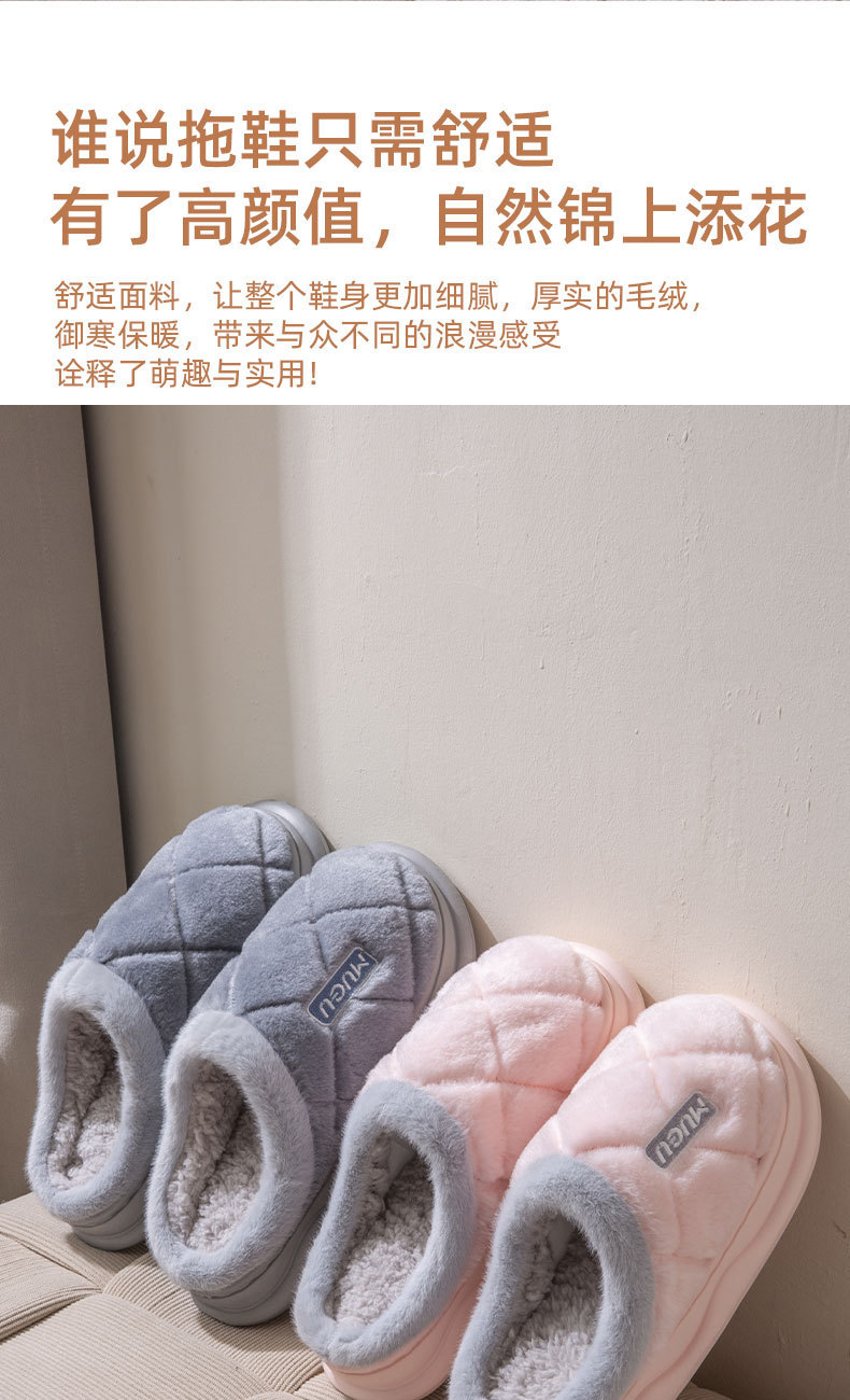 男士棉拖鞋秋冬季家用厚底踩屎感室內情侶家居保暖毛毛絨拖鞋女款