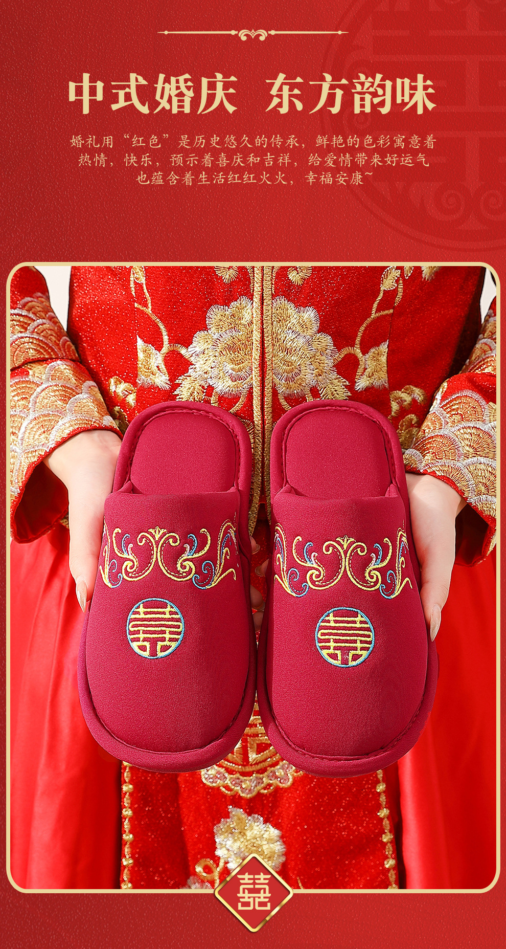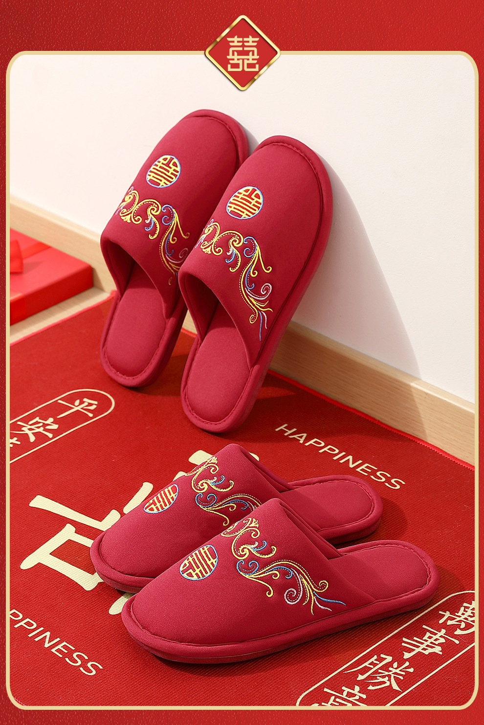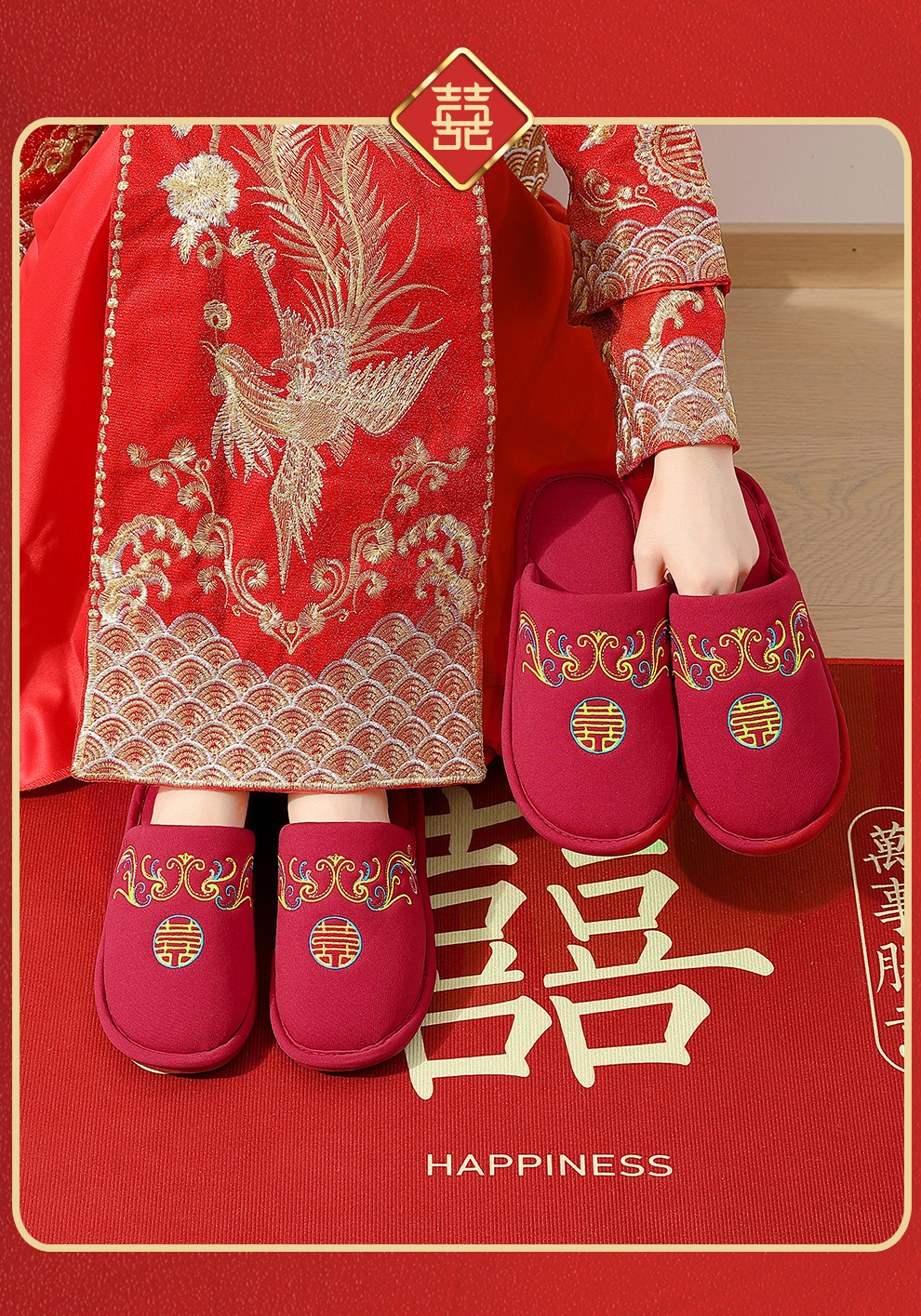 婚禮室內棉拖鞋情侶新婚中式居家防滑女紅色喜慶拖鞋男秋冬季