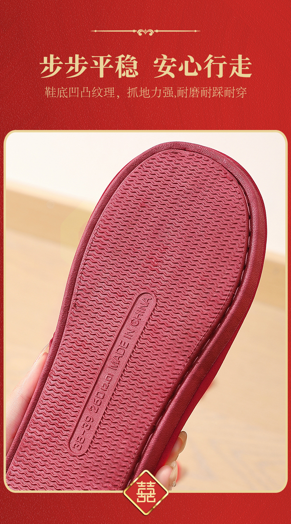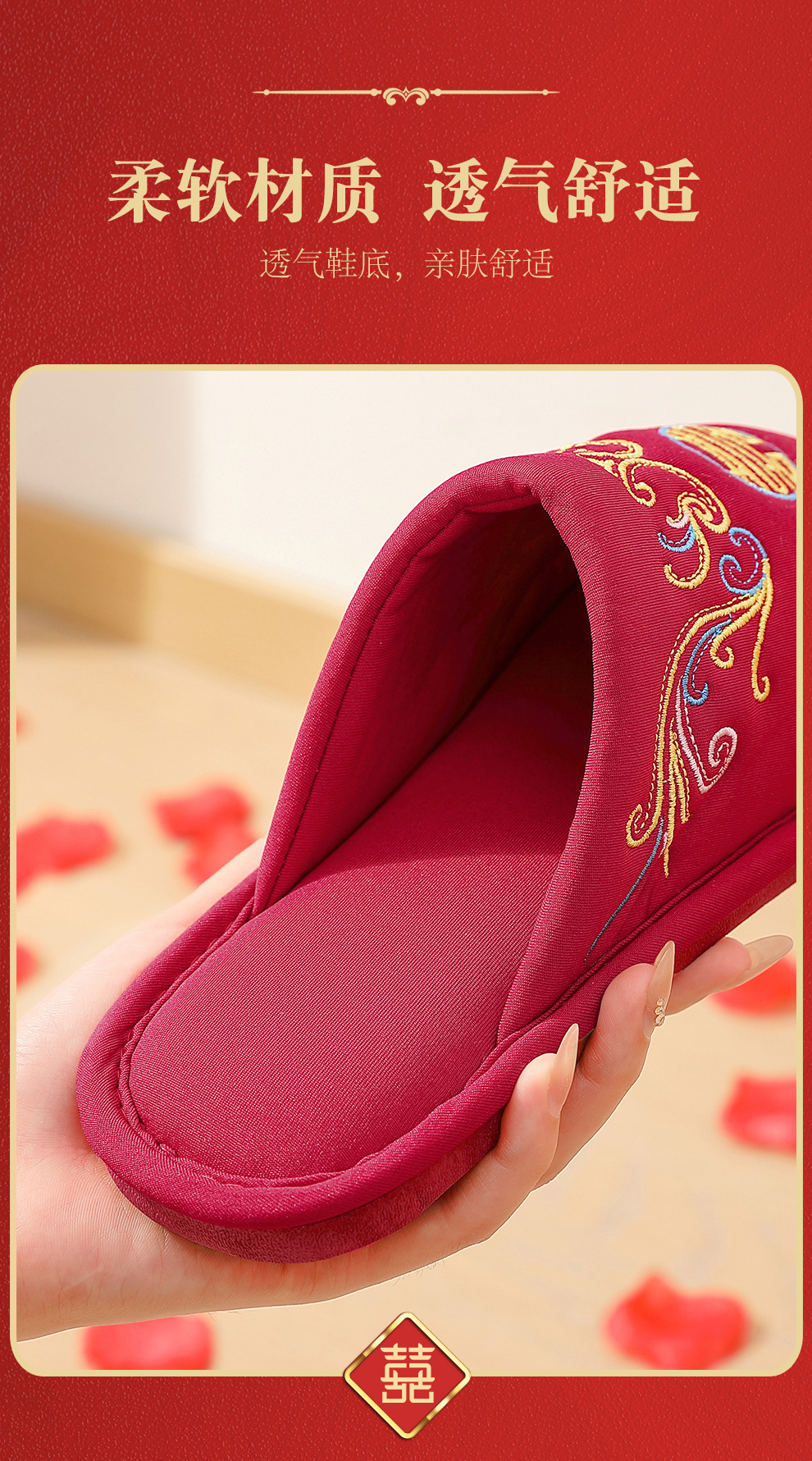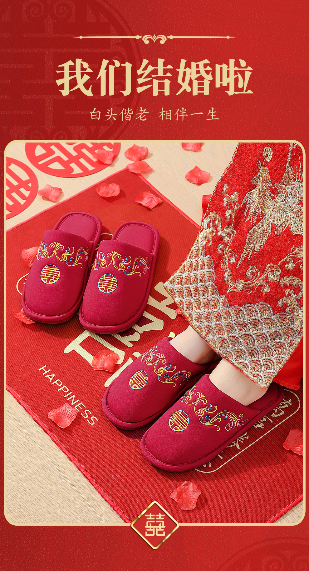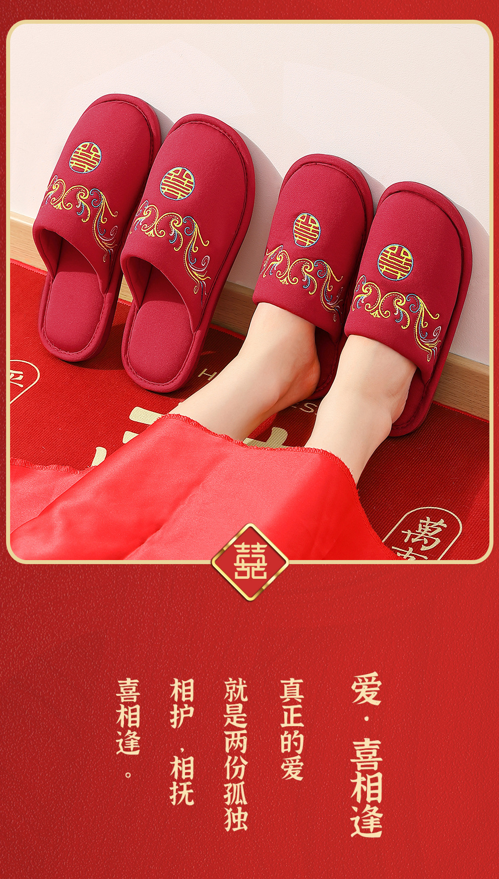 婚禮室內棉拖鞋情侶新婚中式居家防滑女紅色喜慶拖鞋男秋冬季