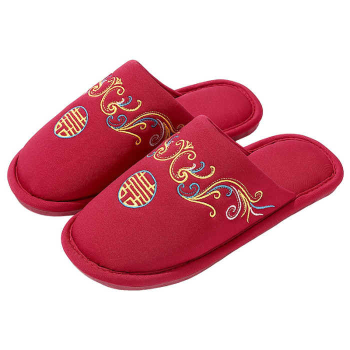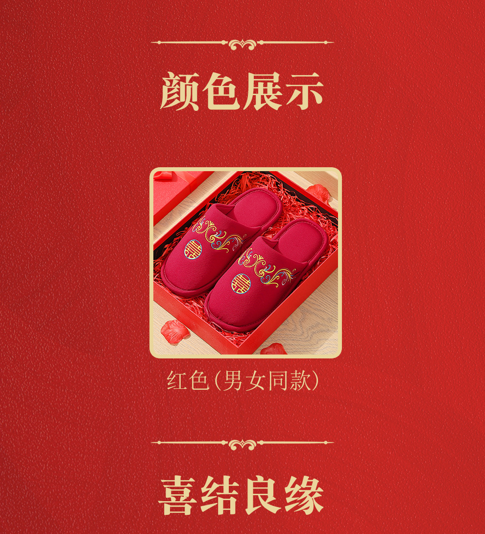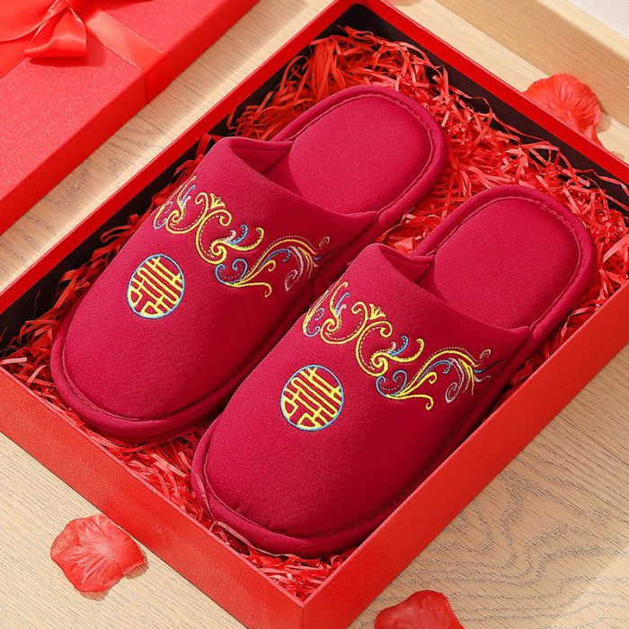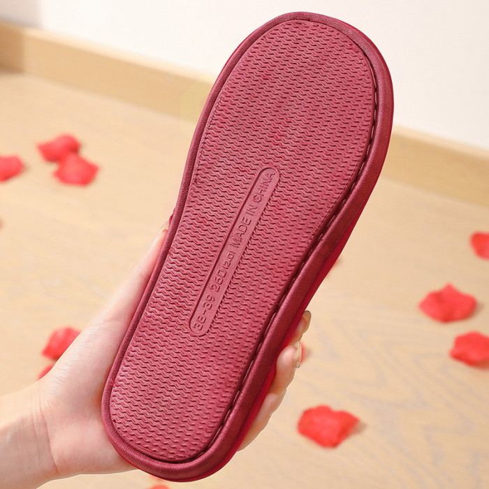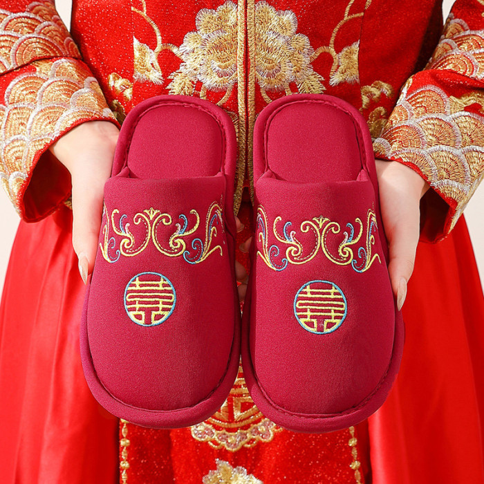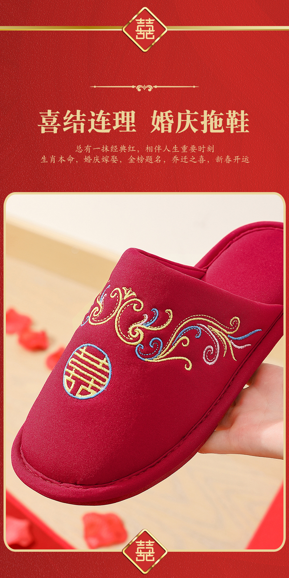 婚禮室內棉拖鞋情侶新婚中式居家防滑女紅色喜慶拖鞋男秋冬季