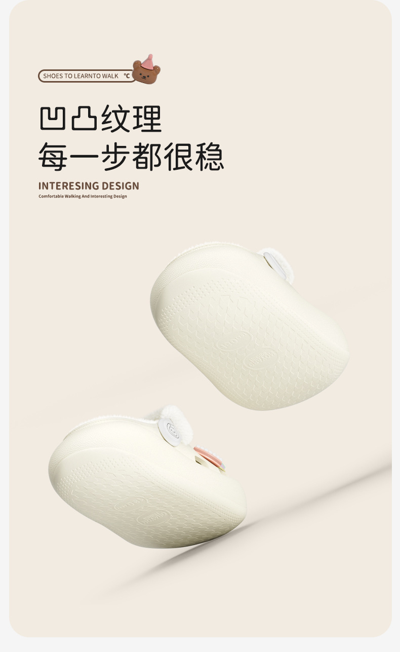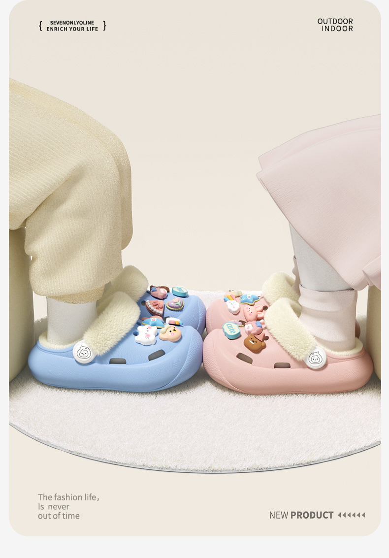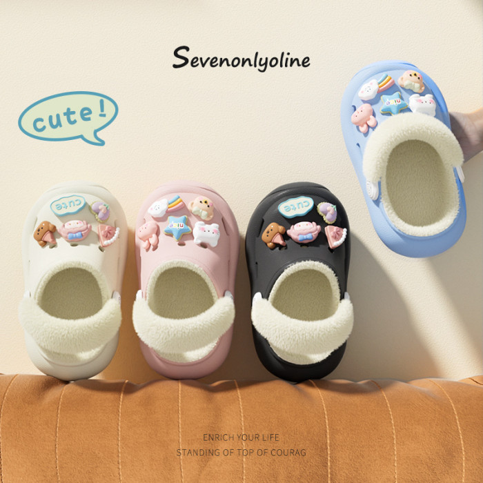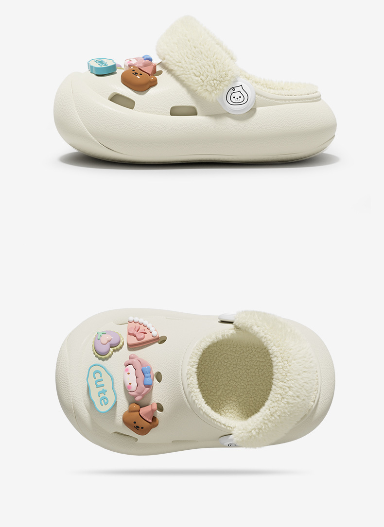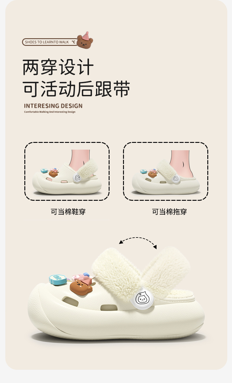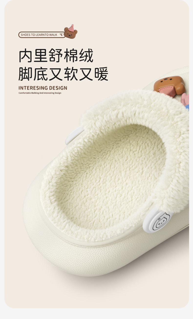 冬季新款兒童綁帶卡通小動物外穿居家內裡加絨保暖DIY鞋花洞洞鞋
