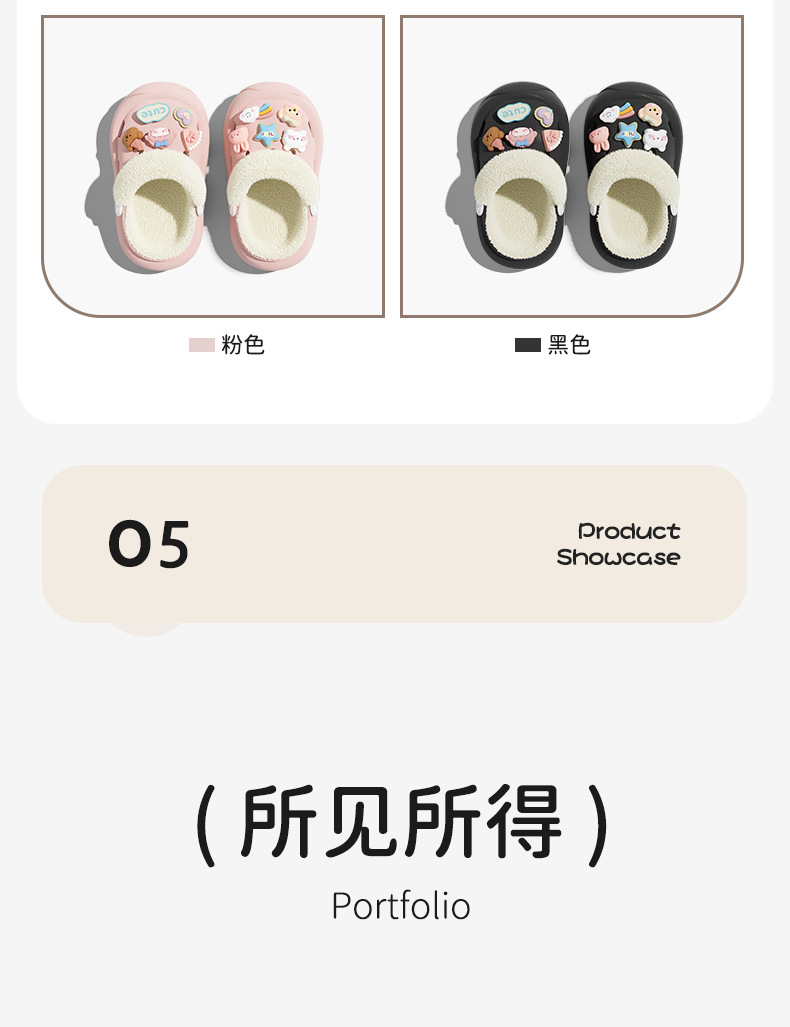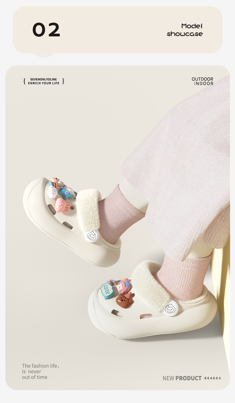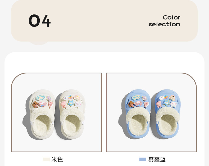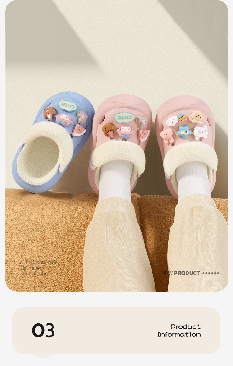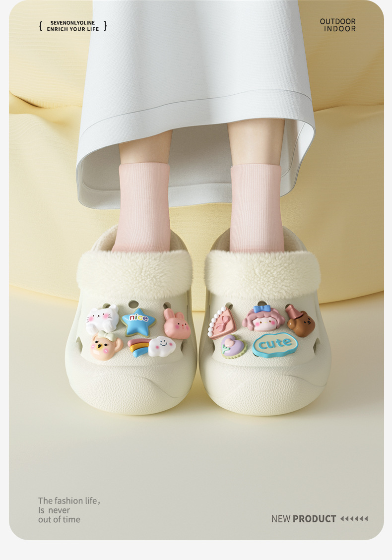 冬季新款兒童綁帶卡通小動物外穿居家內裡加絨保暖DIY鞋花洞洞鞋