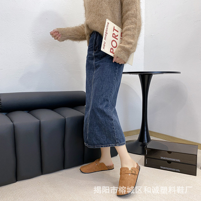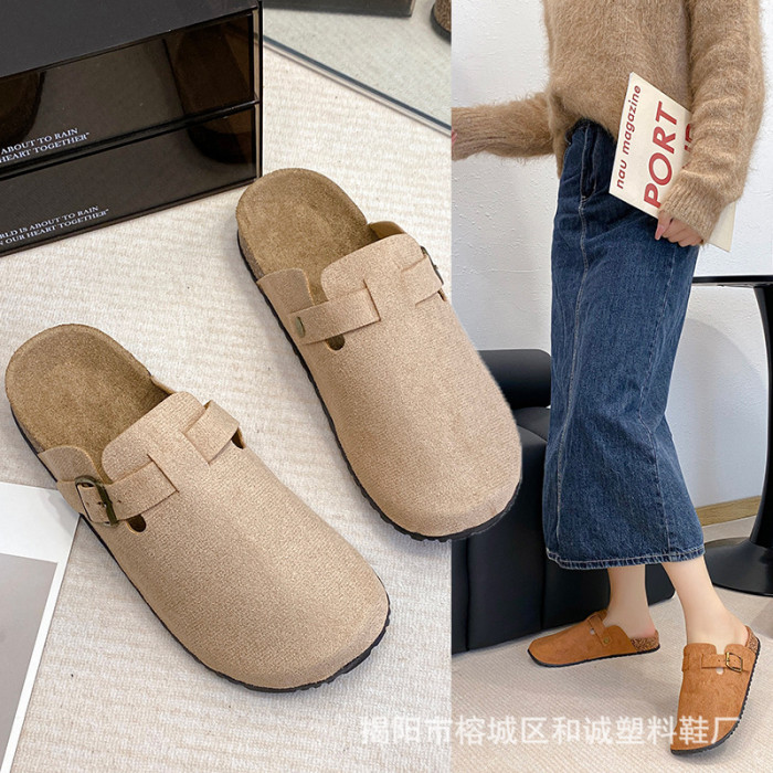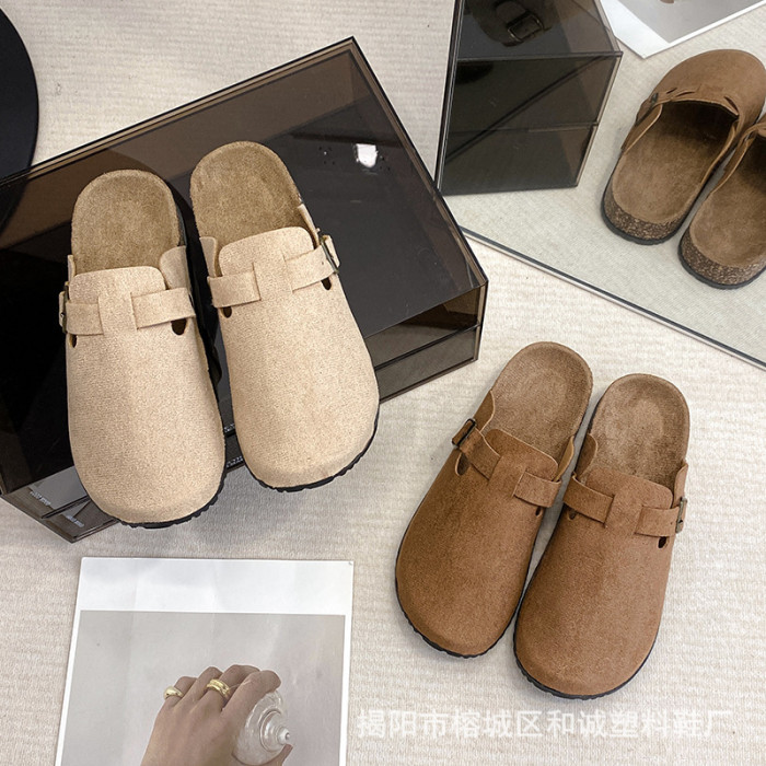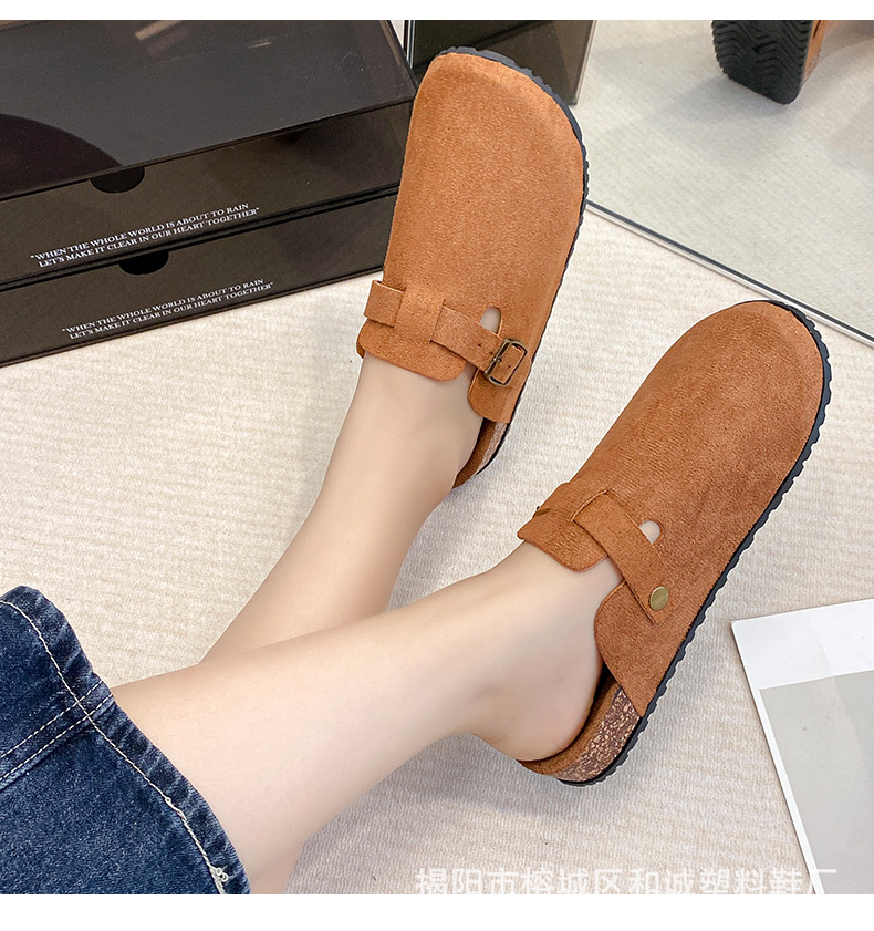 新款復古勃肯鞋夏季外穿釣魚厚底防滑包頭半拖鞋女軟底懶人鞋