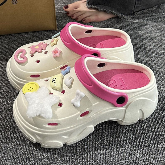 踩屎感厚底洞洞鞋女夏季可愛少女心Y2K多巴胺ins外穿增高EVA拖鞋