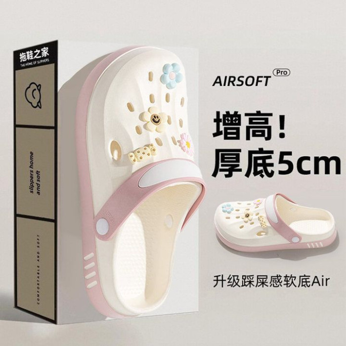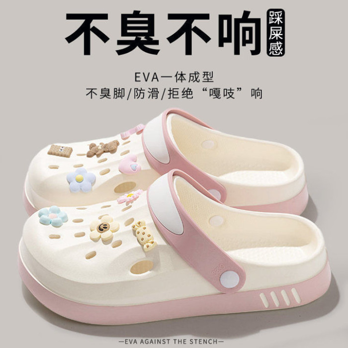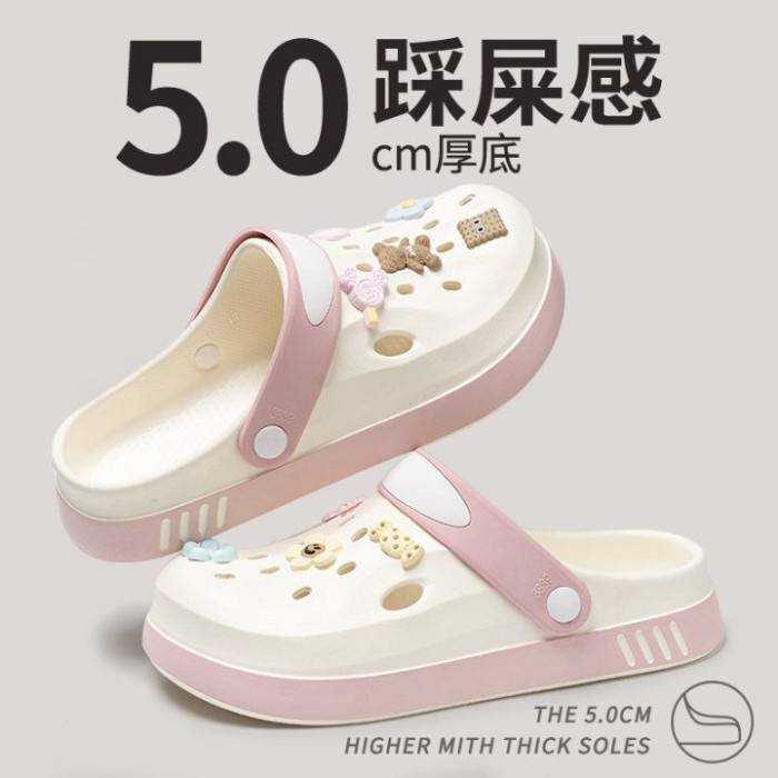 洞洞鞋女款2024新款夏季外穿厚底EVA踩屎感防滑防臭包頭涼拖鞋女