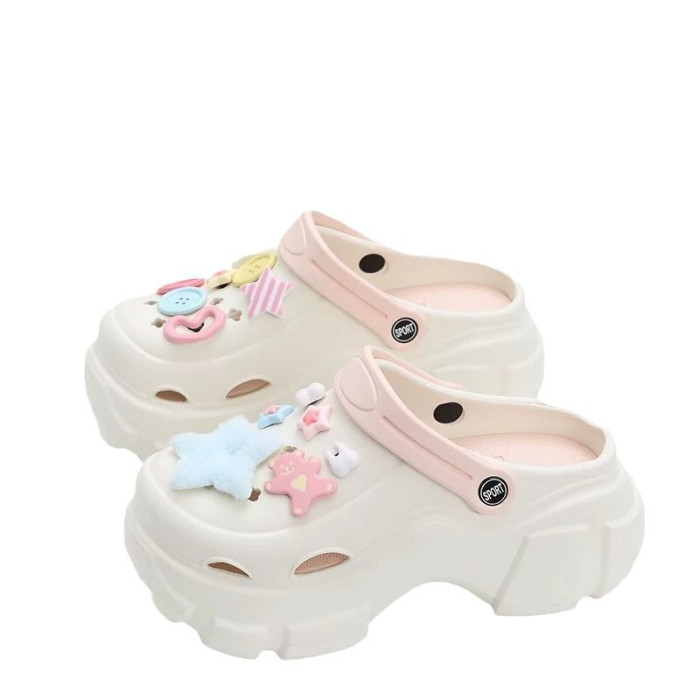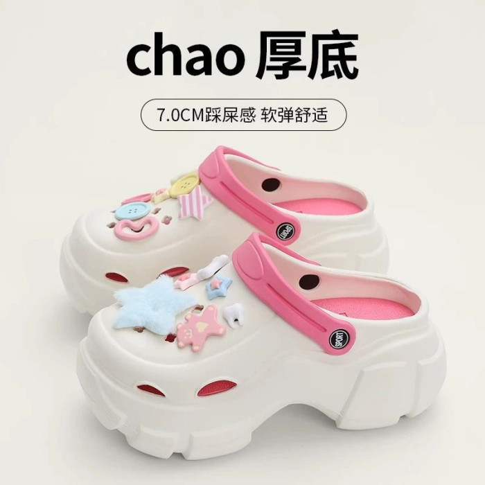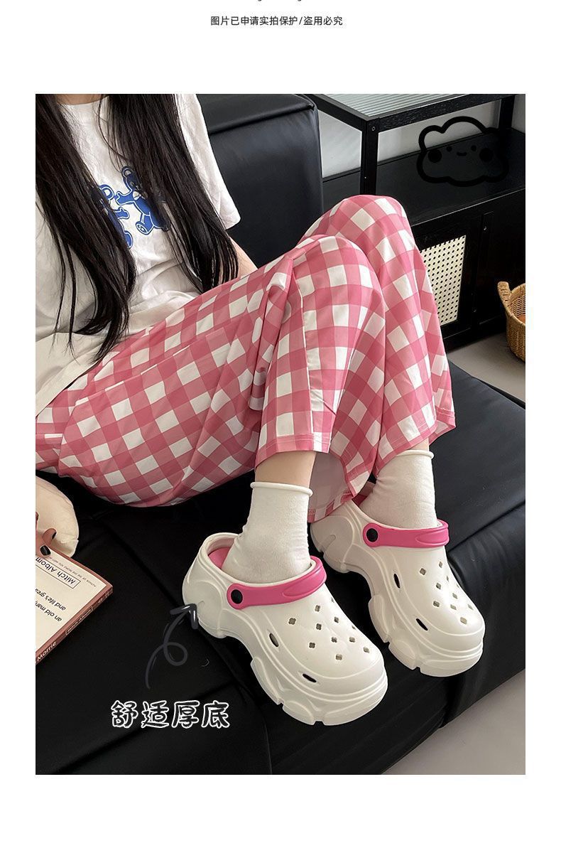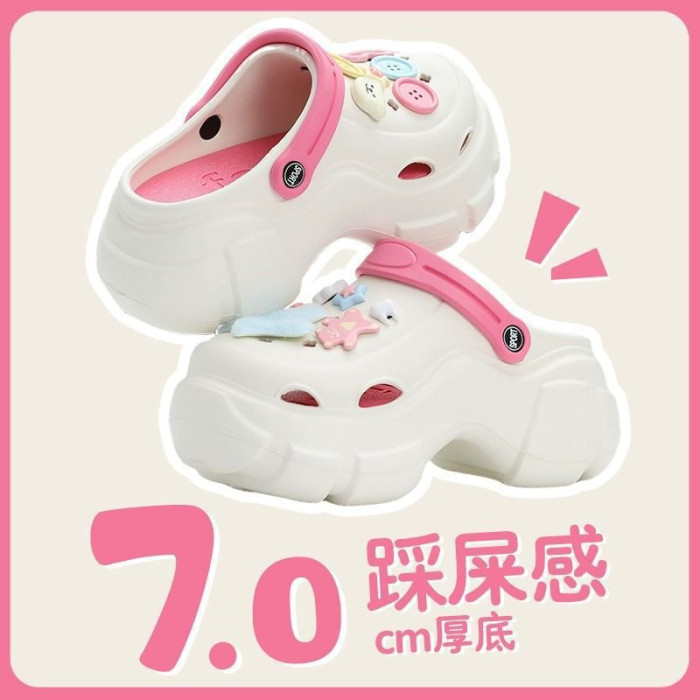 踩屎感厚底洞洞鞋女夏季可愛少女心Y2K多巴胺ins外穿增高EVA拖鞋