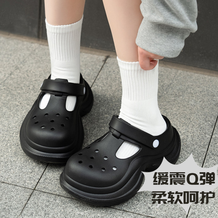 增高厚底洞洞鞋女夏季可外穿防滑沙灘包頭拖鞋時尚百搭eva涼拖鞋