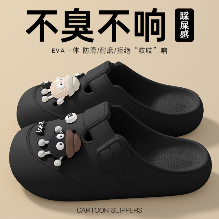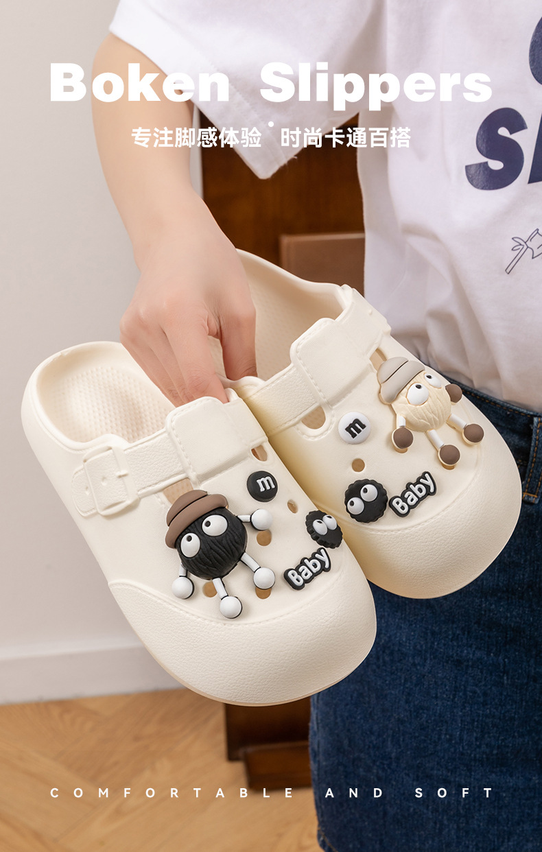煤球洞洞鞋女款夏季2025新款厚底踩屎感增高防滑包頭勃肯拖鞋外穿
