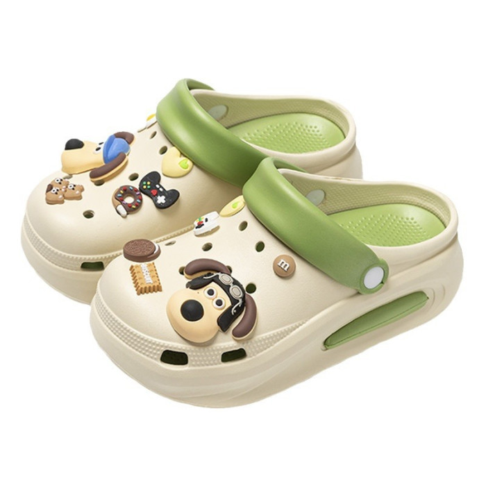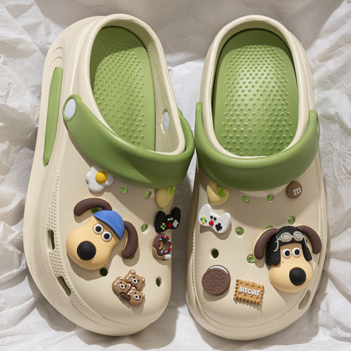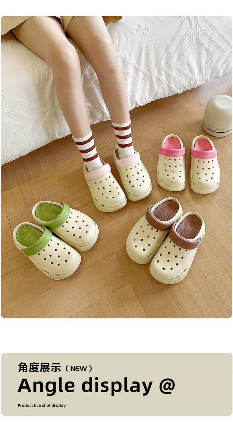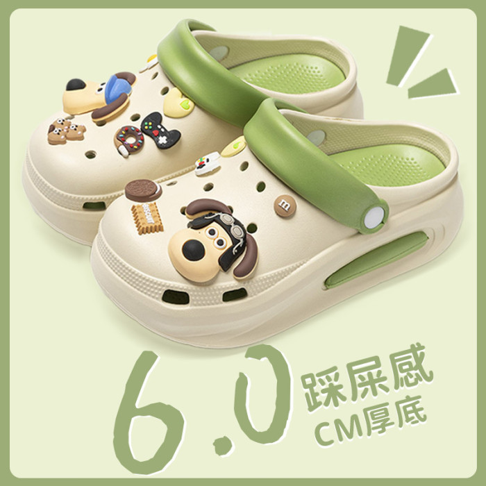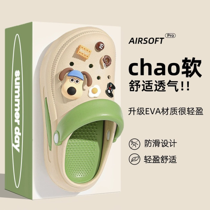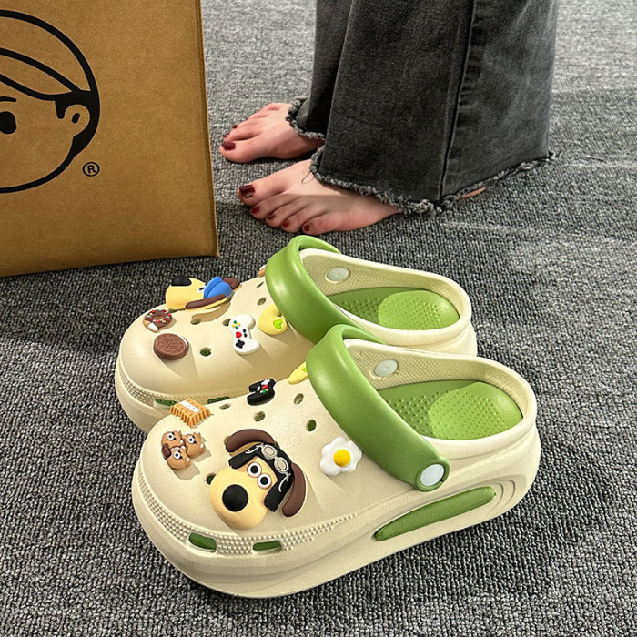 厚底洞洞鞋女夏季外穿2024新款防滑DIY包頭卡通可愛增高涼拖鞋女