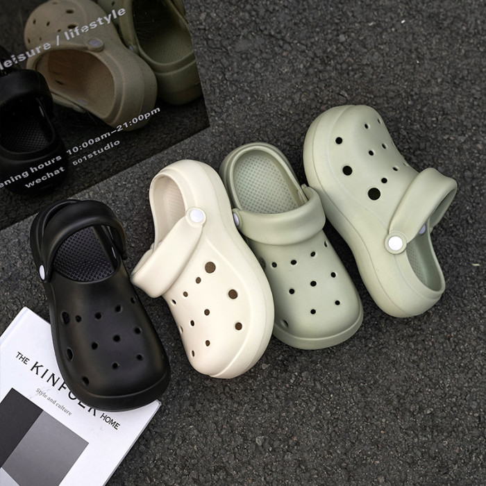 4cm增高洞洞鞋女厚底加厚包頭eva拖鞋夏季外穿防滑透氣防臭腳涼鞋