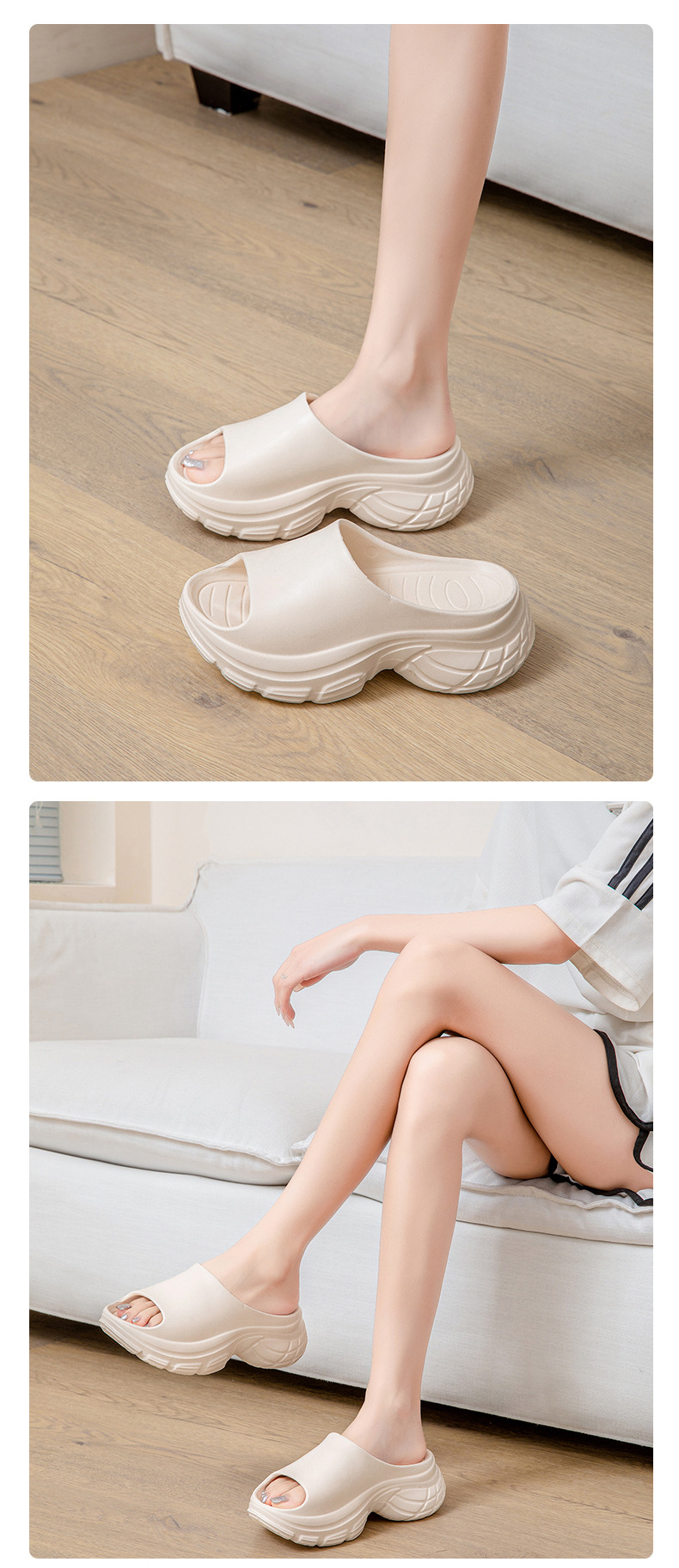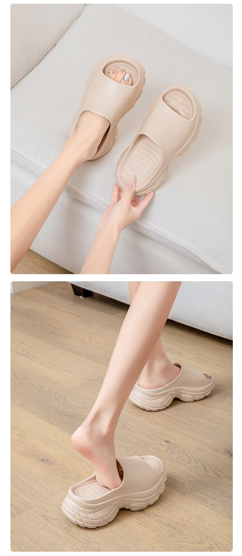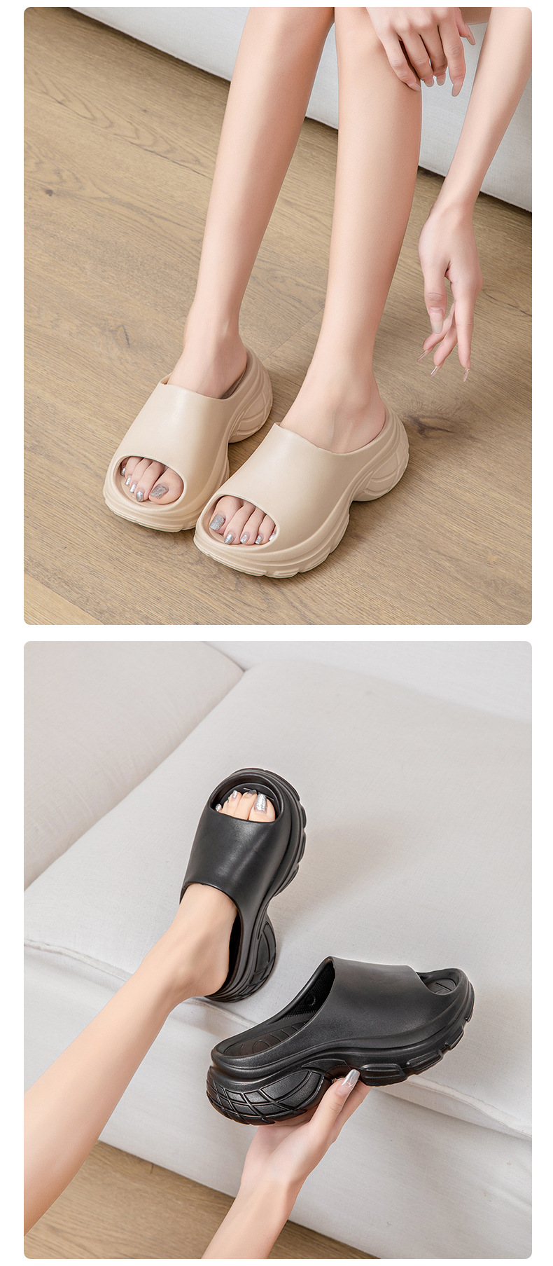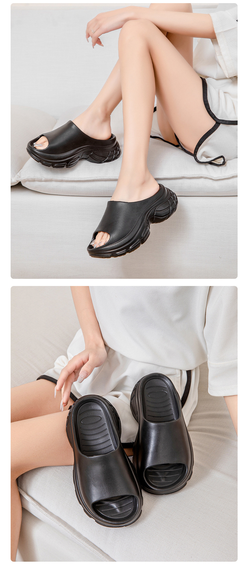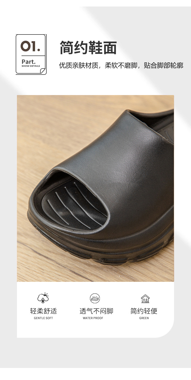 拖鞋女外穿夏季厚底防滑透氣一字拖 耐磨EVA防臭高級感純色涼拖鞋