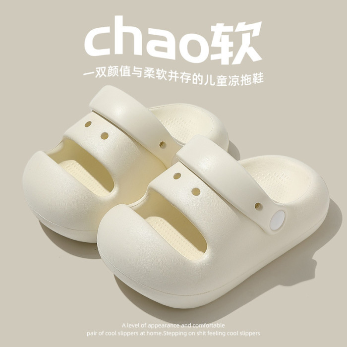 兒童洞洞鞋男女童夏外穿透氣家居室內防滑軟底踩屎感兒童拖鞋