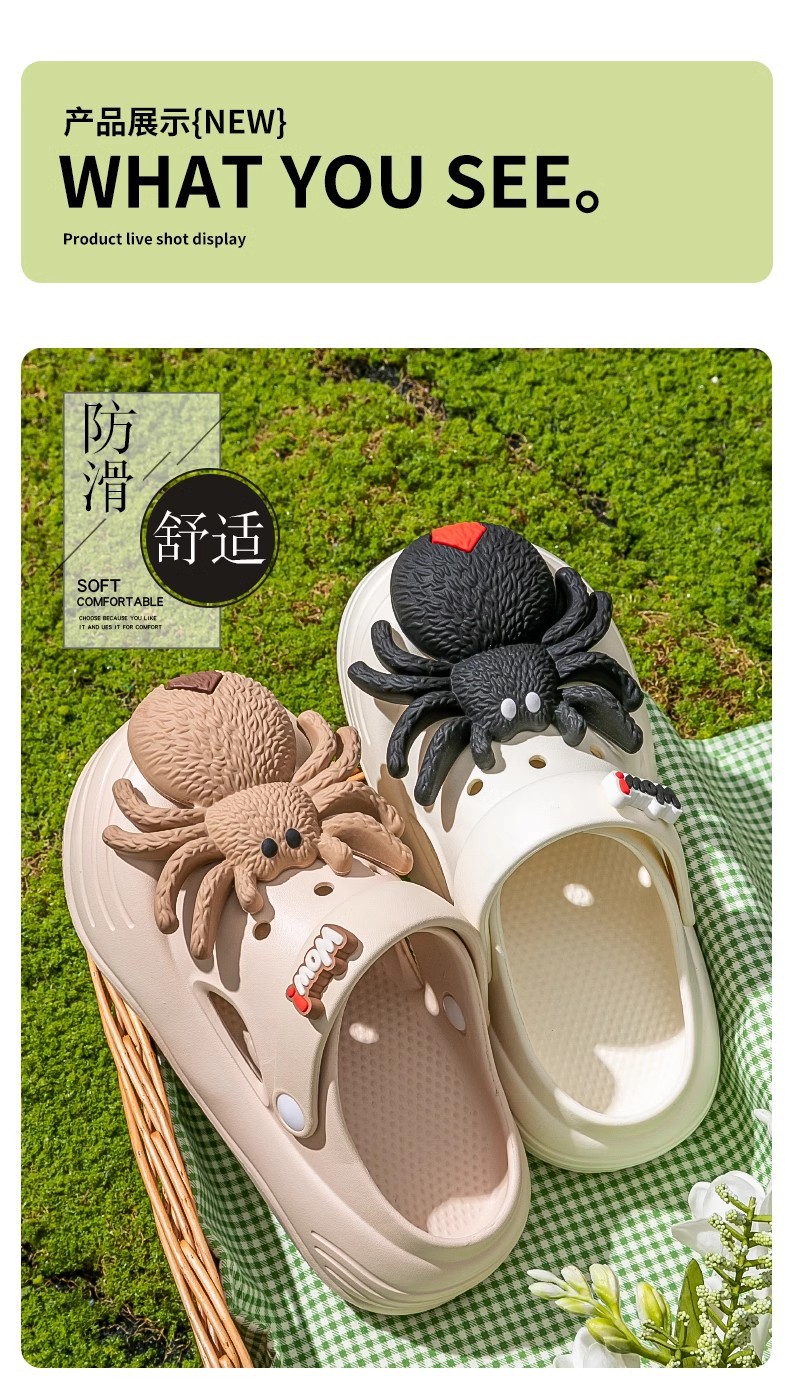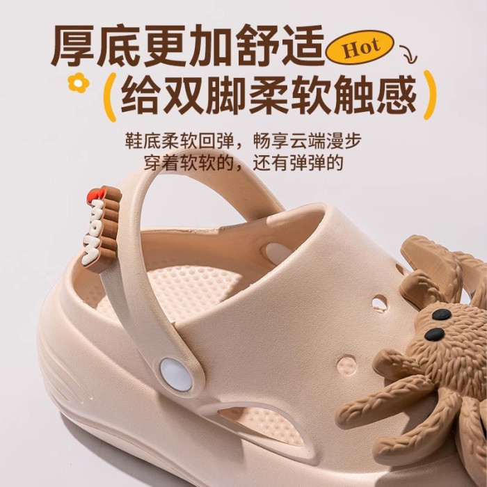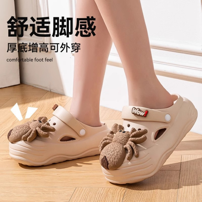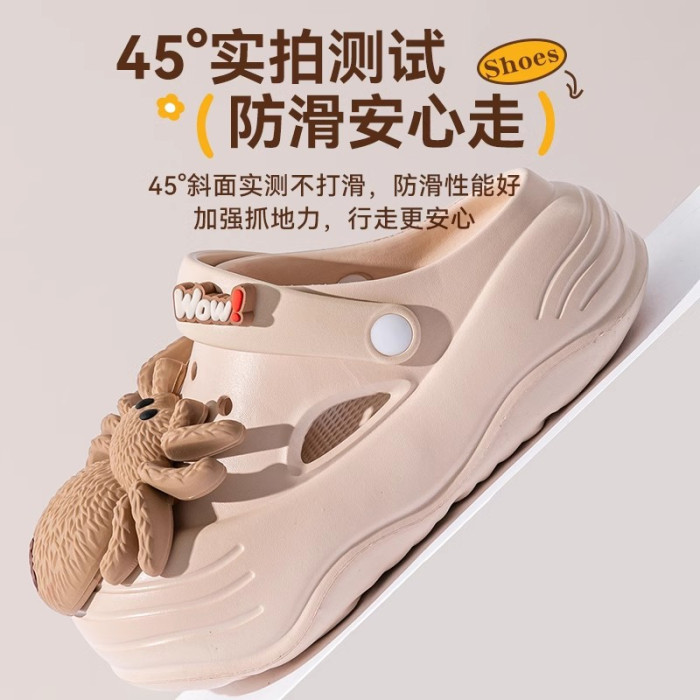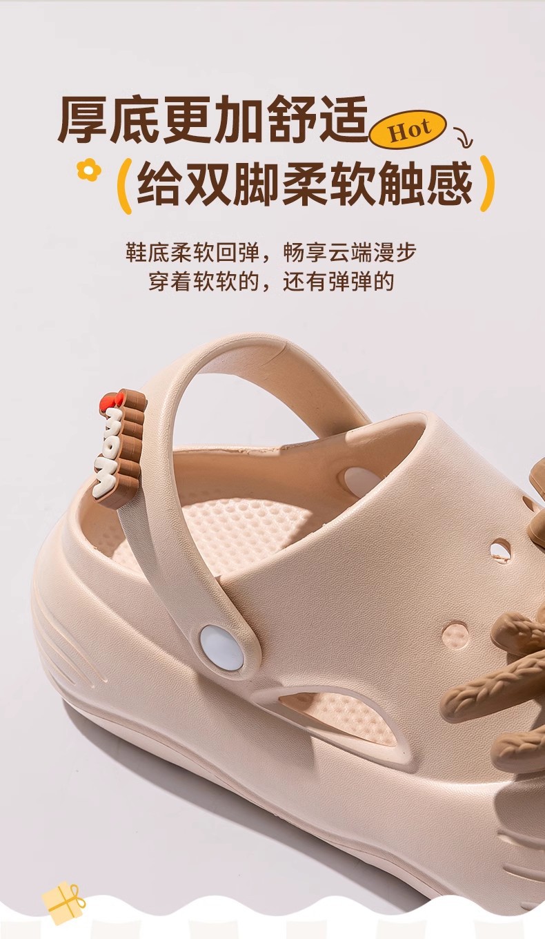 踩屎感洞洞鞋女款夏季2025新款外穿厚底增高沙灘防滑防臭包頭拖鞋