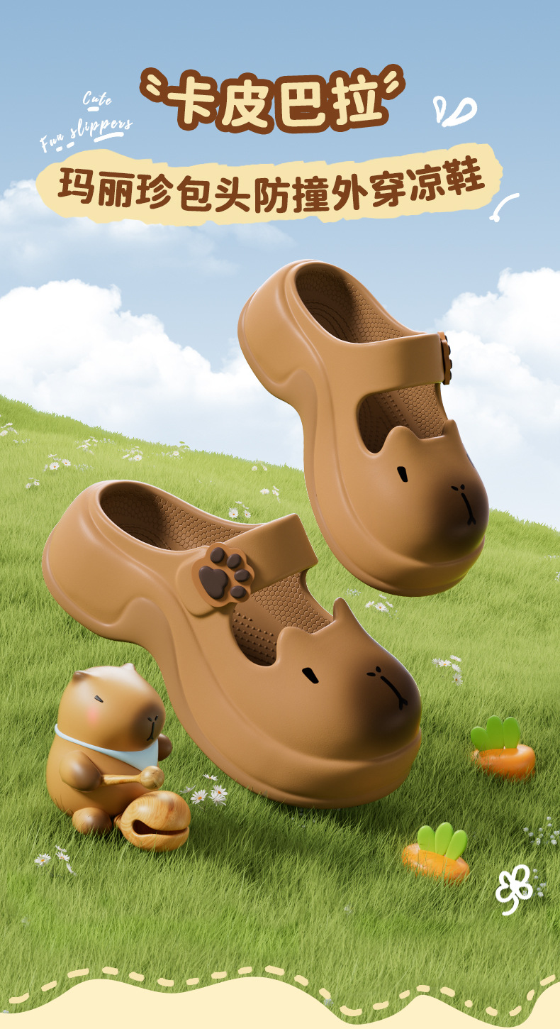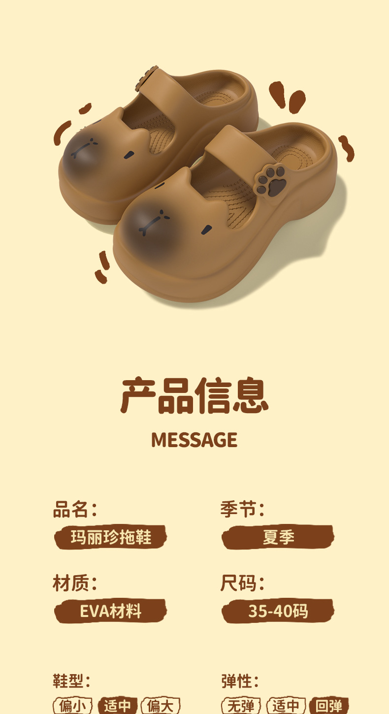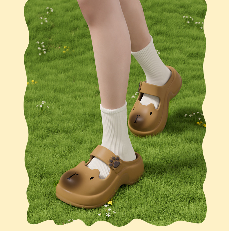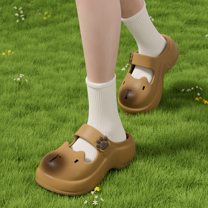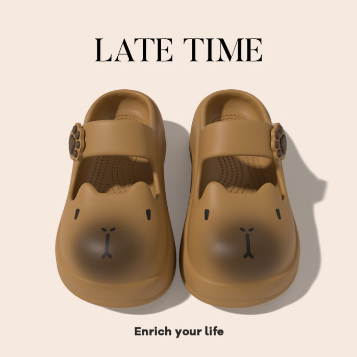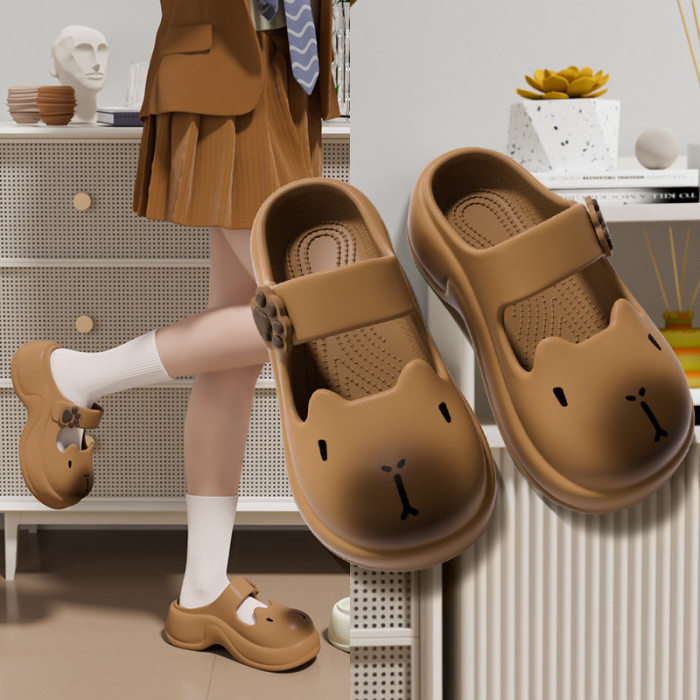 卡皮巴拉包頭涼拖鞋室內居家女夏季百搭沙灘鞋防滑厚底瑪麗珍外穿