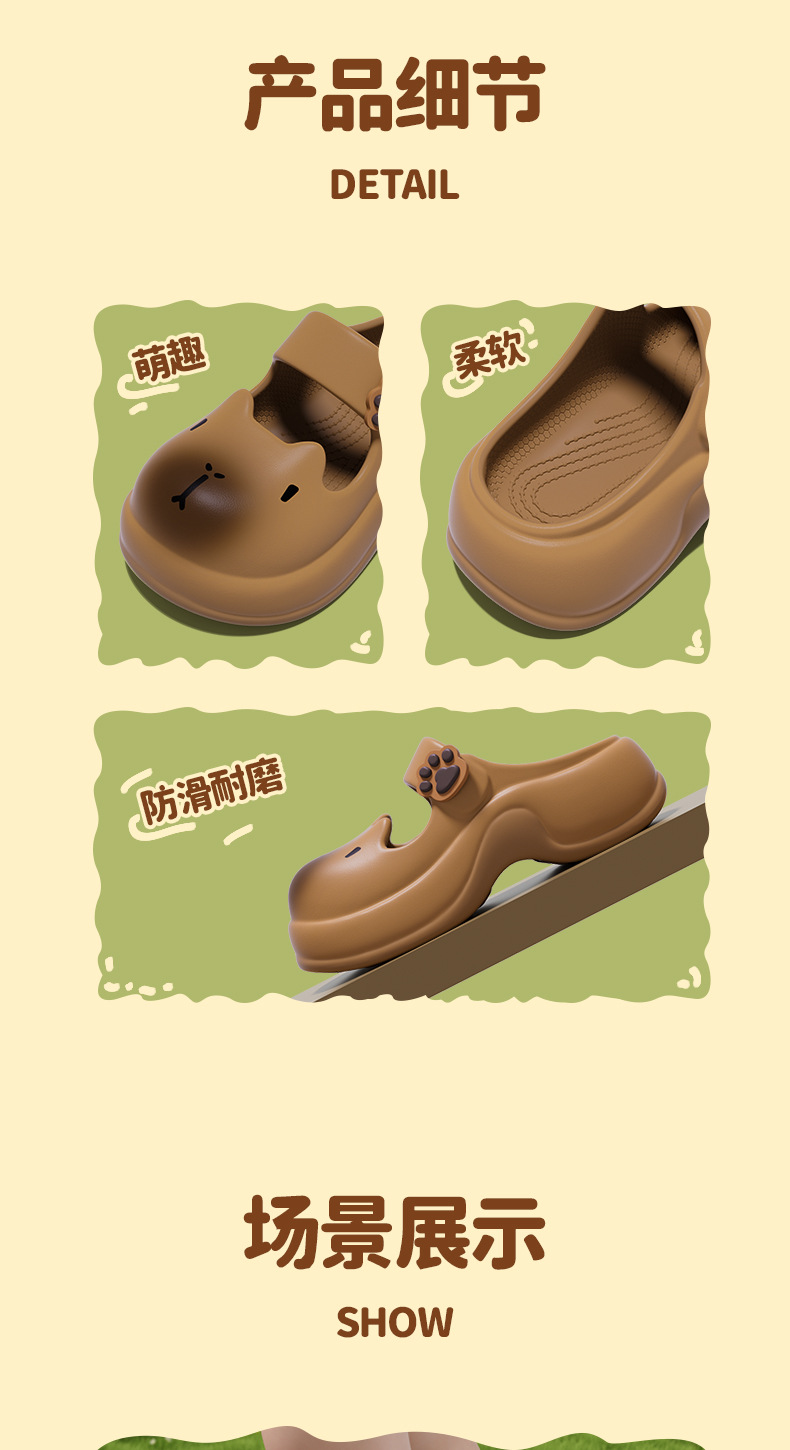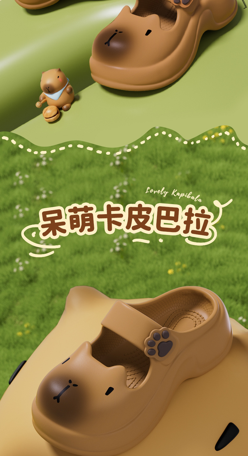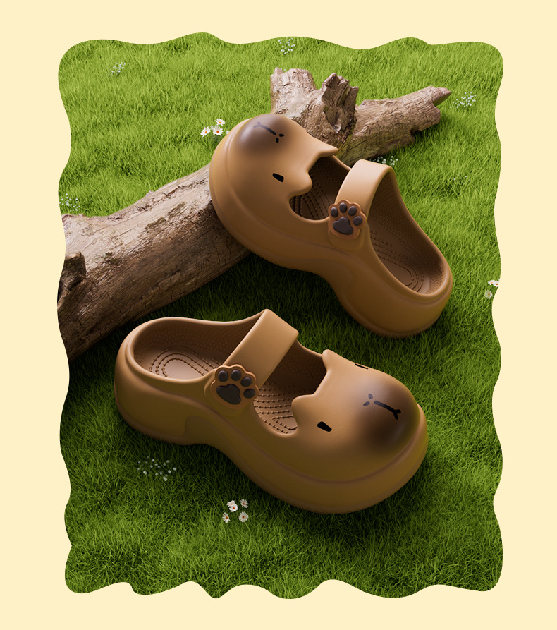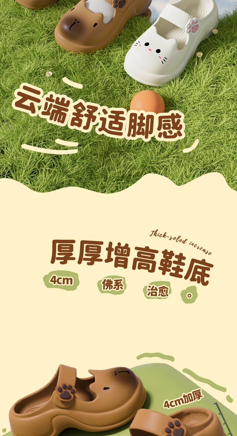 卡皮巴拉包頭涼拖鞋室內居家女夏季百搭沙灘鞋防滑厚底瑪麗珍外穿