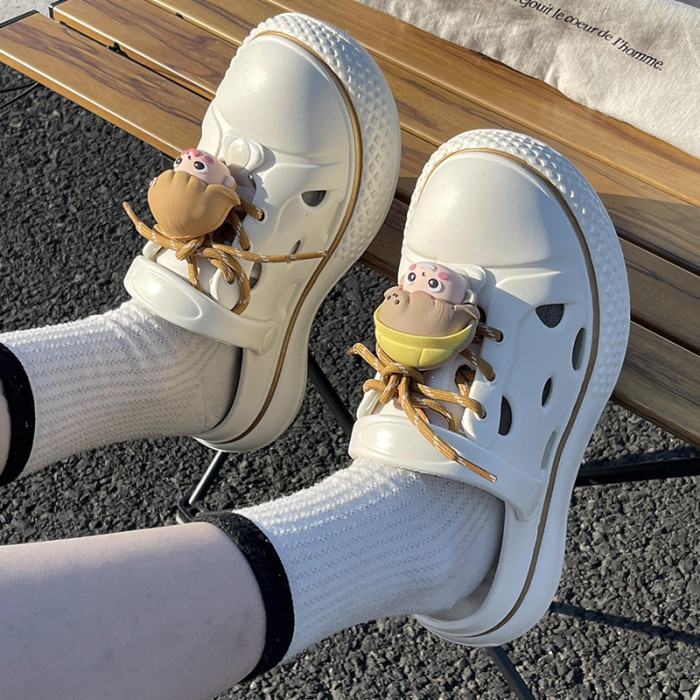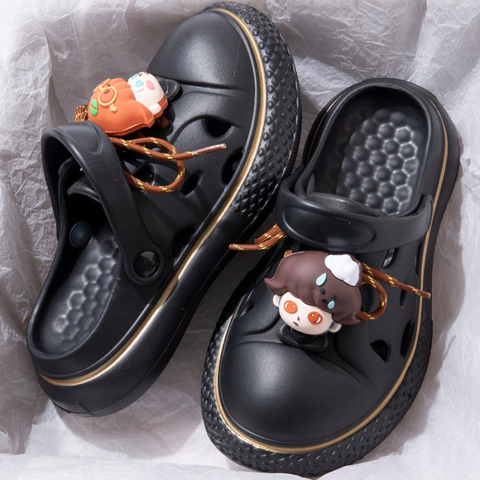 卡通洞洞鞋女夏季家居防滑可愛eva防臭海邊沙灘包頭涼拖鞋女外穿