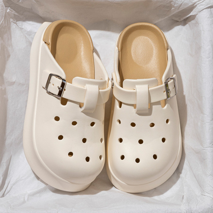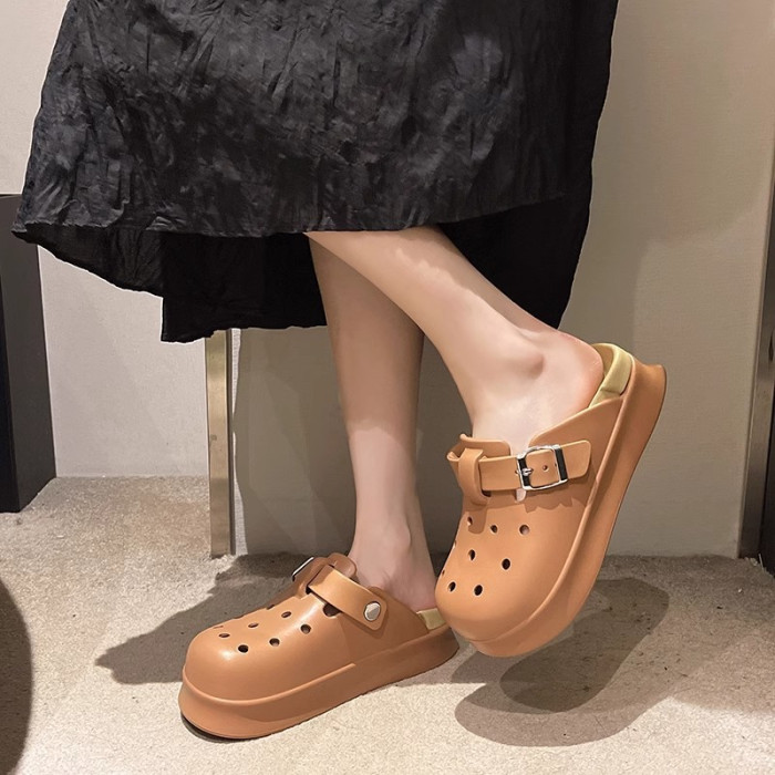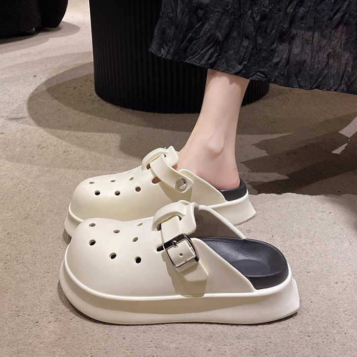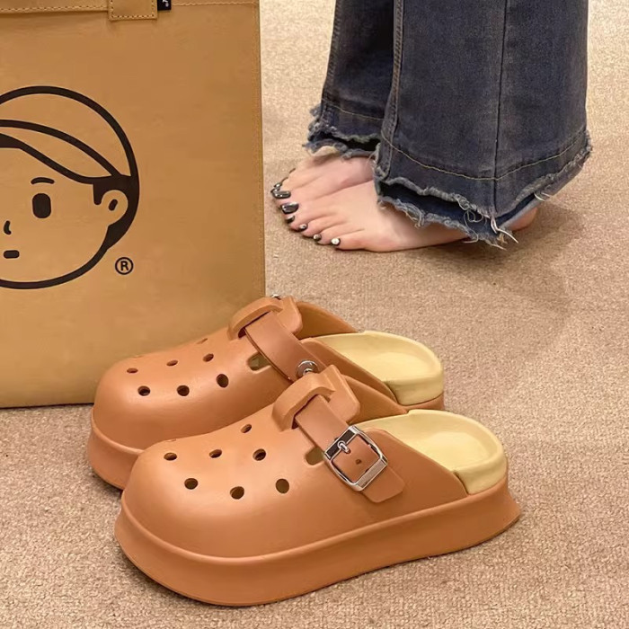 勃肯洞洞鞋女士夏季新款網紅外穿時尚厚底防滑海邊沙灘包頭涼拖鞋
