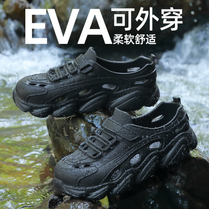 踩屎感洞洞鞋男士夏季2025新款外穿軟底網紅沙灘開車防滑包跟涼鞋