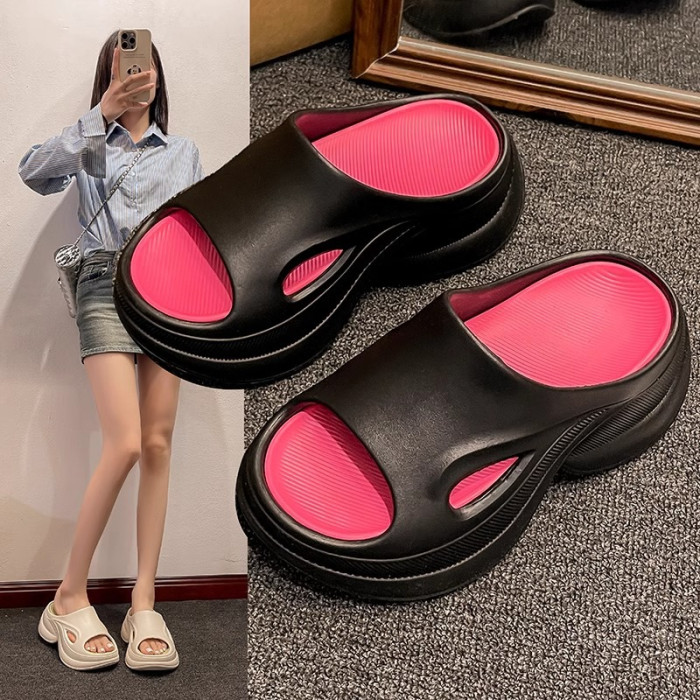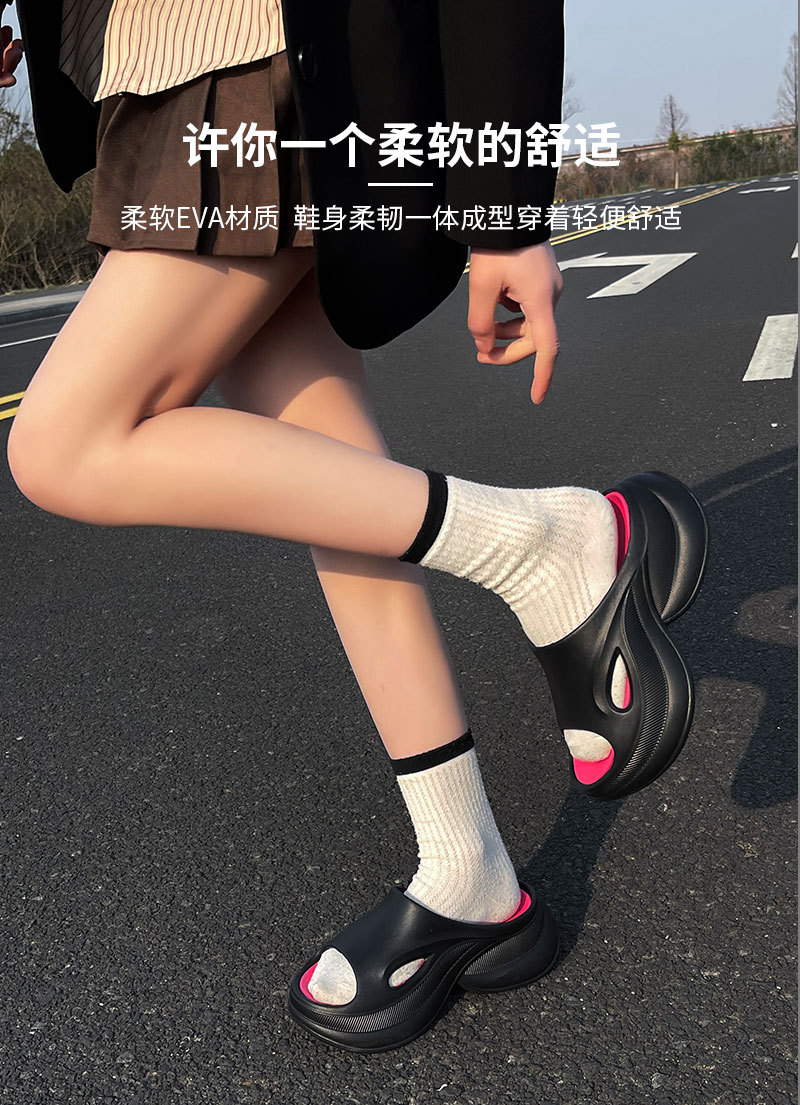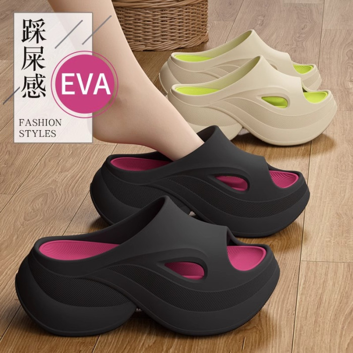 踩屎感拖鞋女2025新款夏季外穿潮流時尚厚底矮個子女生增高涼拖鞋