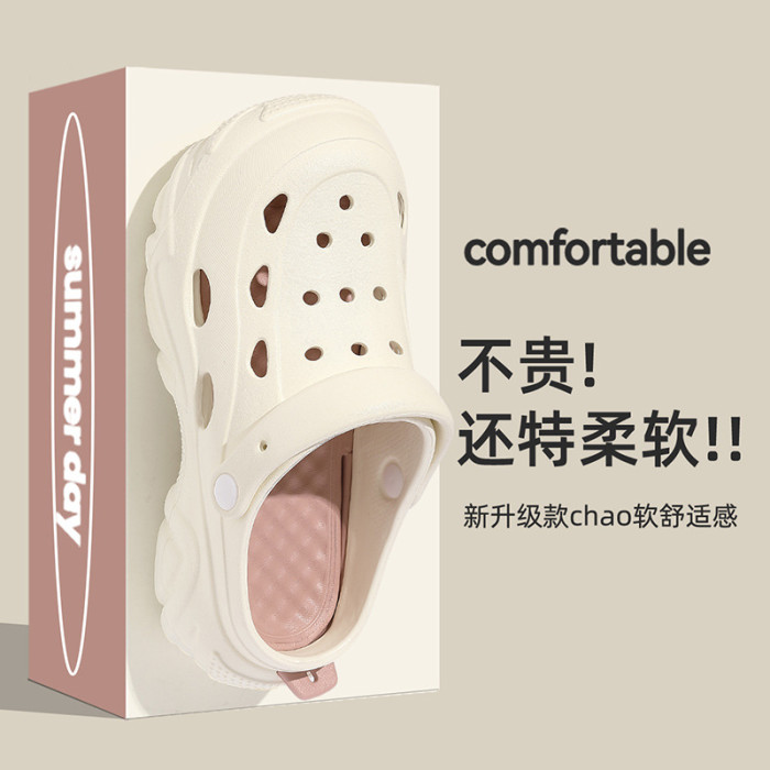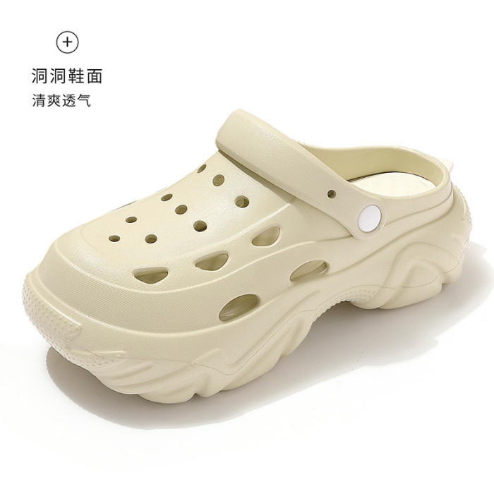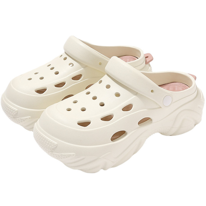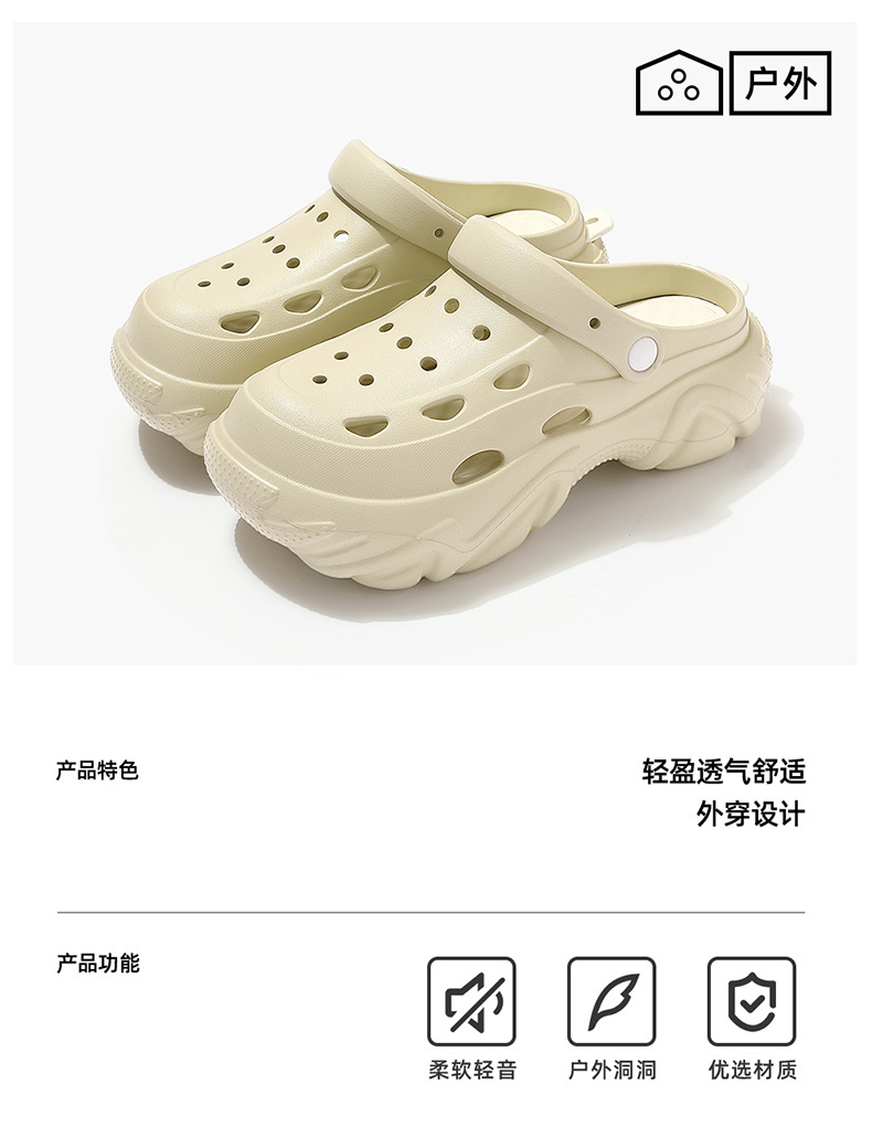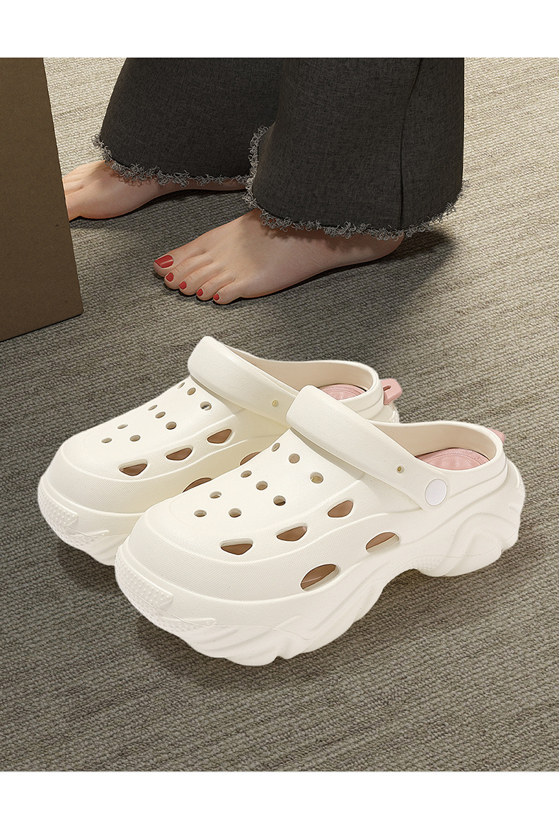 厚底白色洞洞鞋女款2025新款超火夏季外穿防滑透氣顯高沙灘涼鞋
