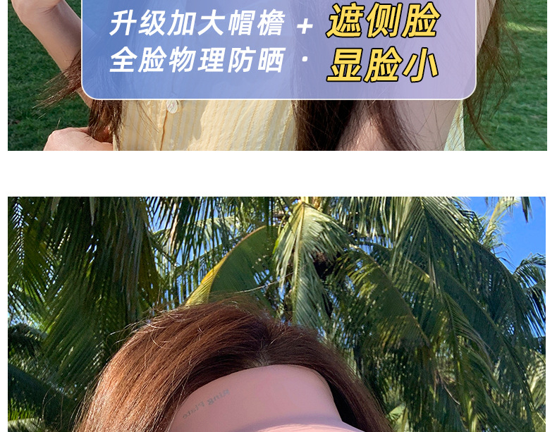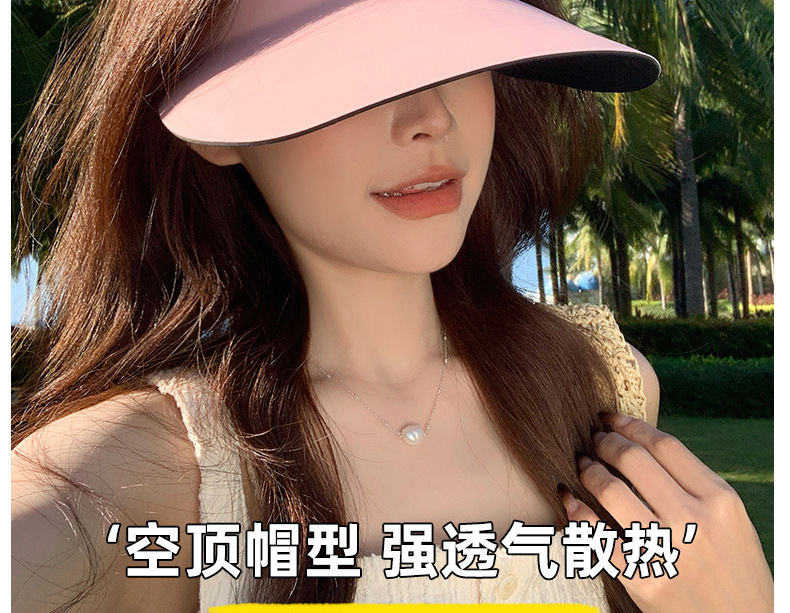 空頂防曬帽女防紫外線夏季新款遮陽帽大帽簷遮臉無痕一體太陽帽子