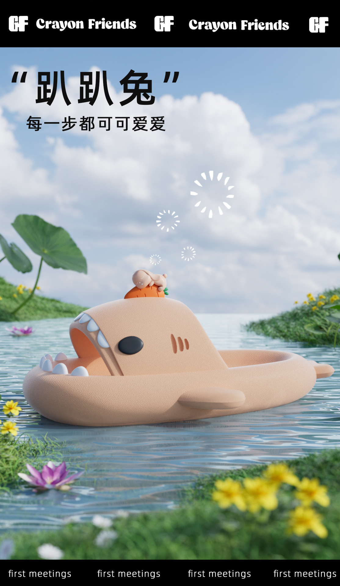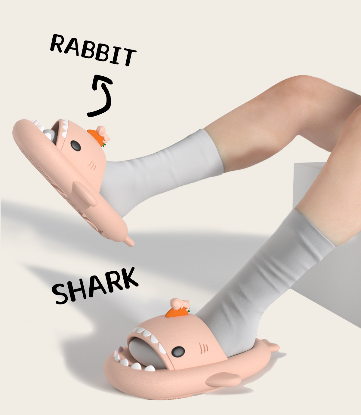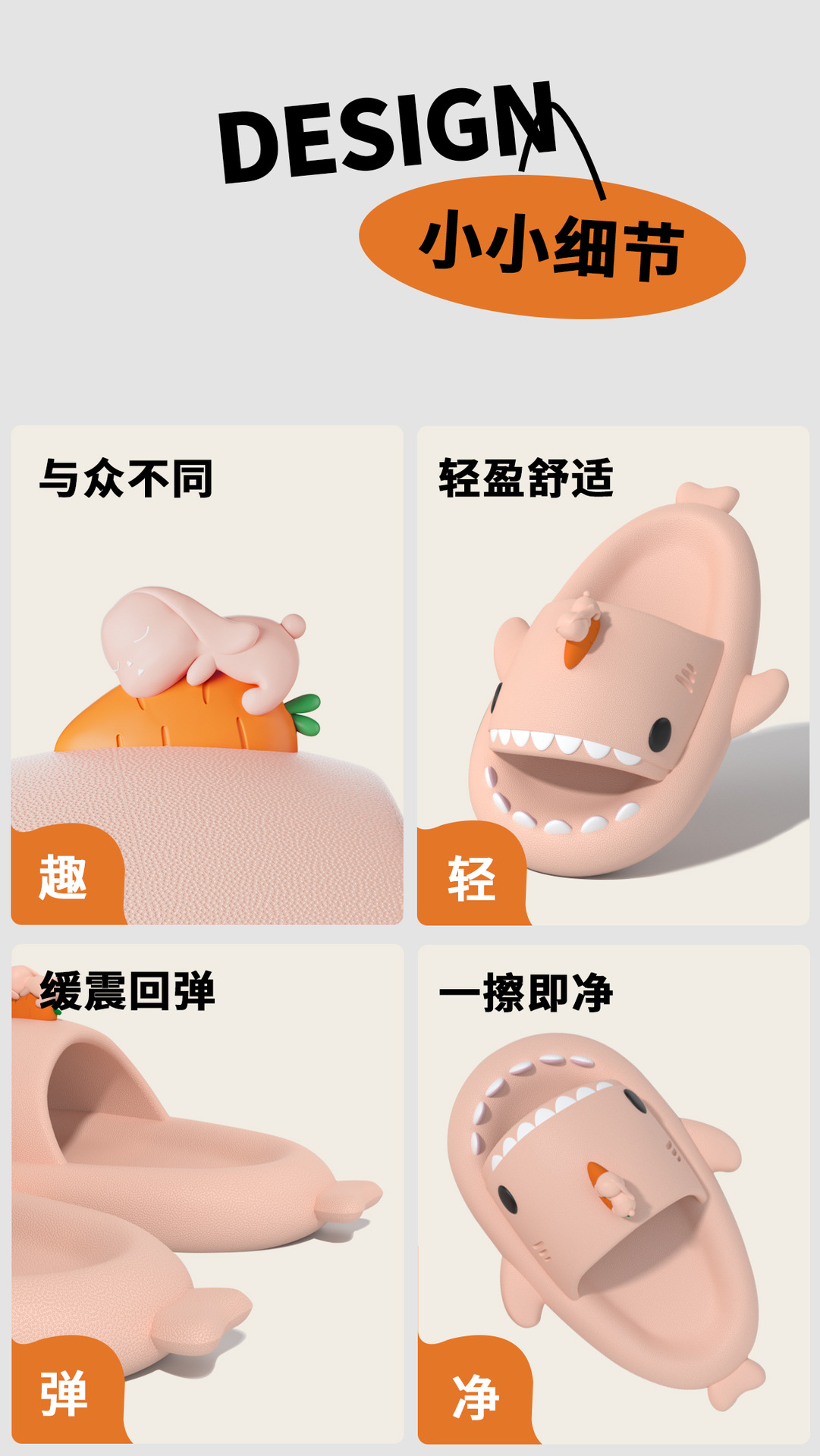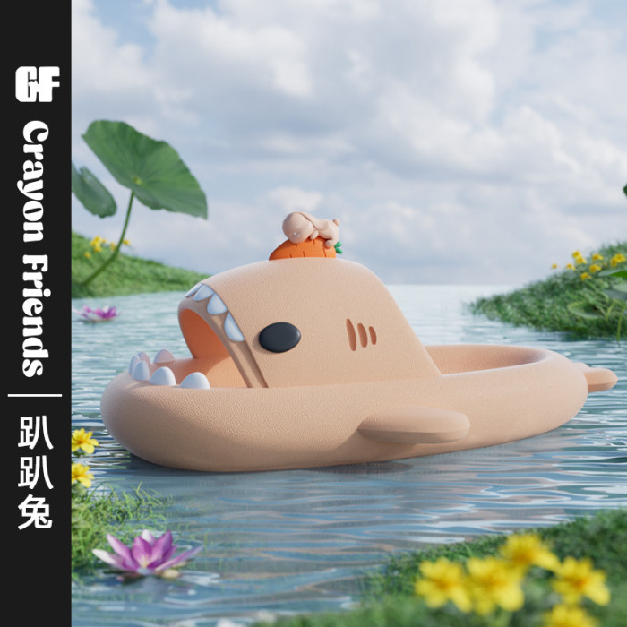 趴趴兔鯊魚拖鞋女夏季卡通防滑居家用洗澡情侶男踩屎感外穿拖鞋女