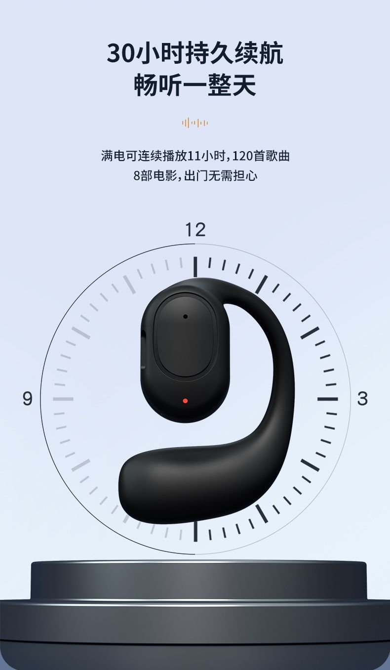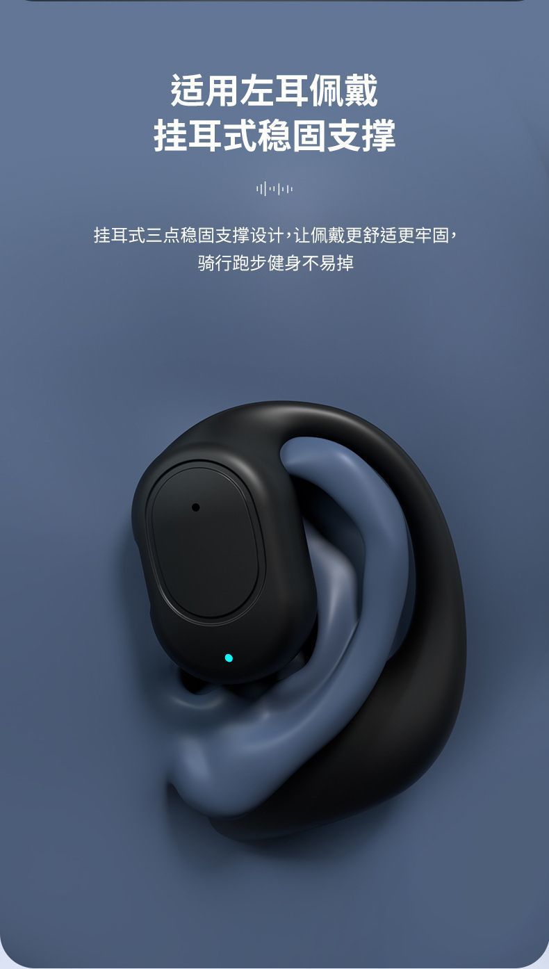 開放不入耳式無線藍牙耳機超長續航空氣骨傳導掛耳式運動手機通用