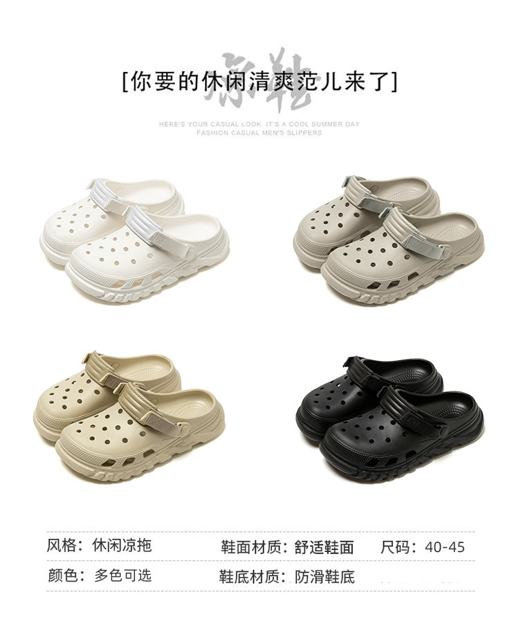 蝸輪洞洞鞋男沙灘鞋外穿女鞋厚底防滑時尚拖鞋涼拖戶外拖鞋包頭