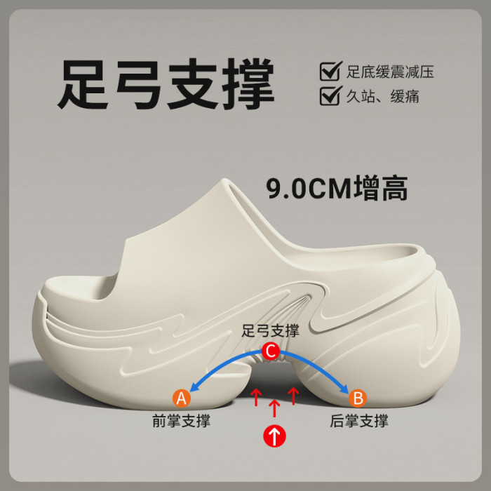 9.0CM超厚底拖鞋女2025爆款網紅增高跟超火絕美松糕底外穿涼拖鞋