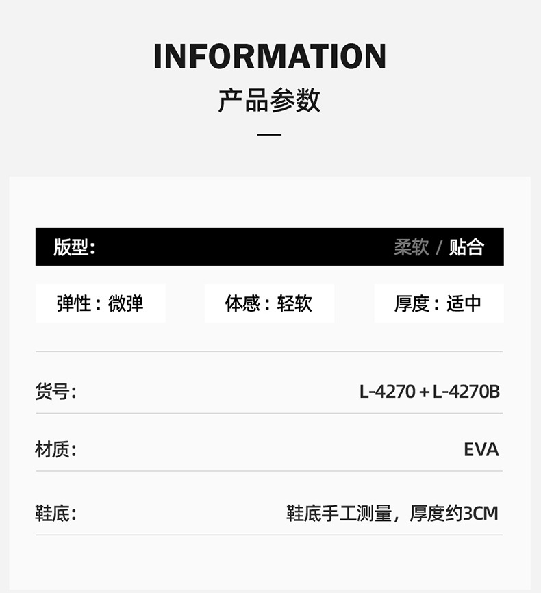 | 鞋底厚度 | 1.5cm(含)-3.5cm(不含) |