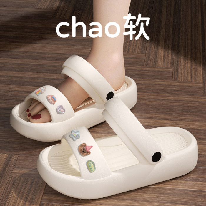 厚底涼鞋女夏季外穿防滑2025新款海邊沙灘鞋eva帶後跟兩穿涼拖鞋