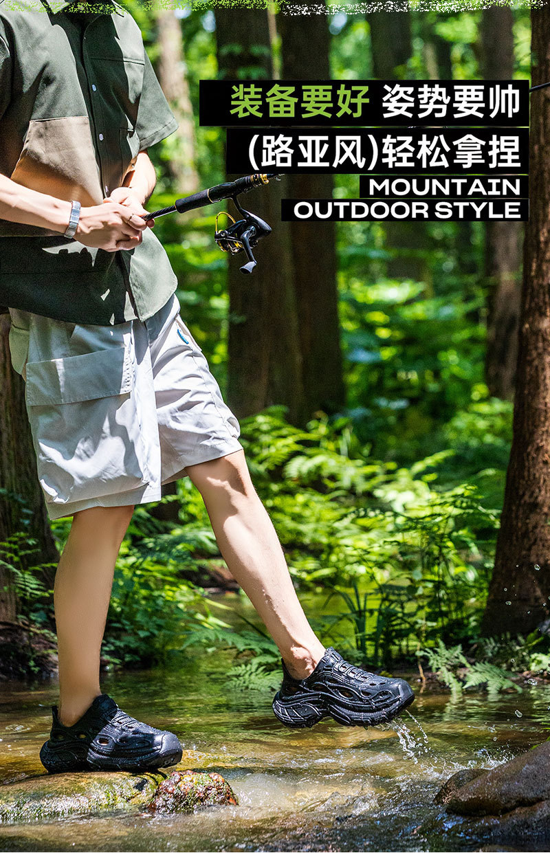 釣魚洞洞鞋男款夏季外穿防臭防滑全包開車戶外沙灘溯谿涉水涼鞋男