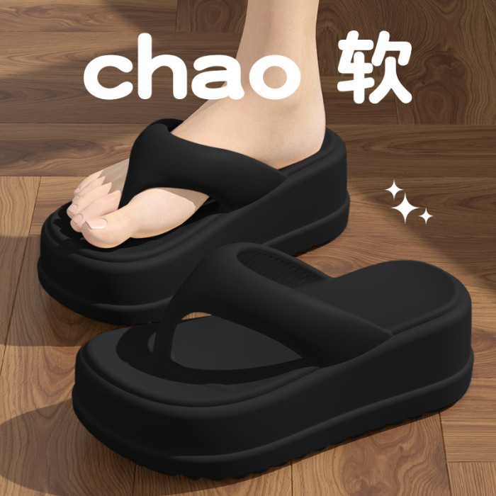 人字拖女夏季外穿2025新款夾腳厚底小個子韓版海邊沙灘踩屎感拖鞋