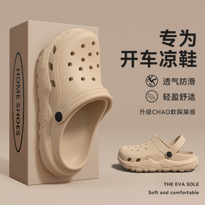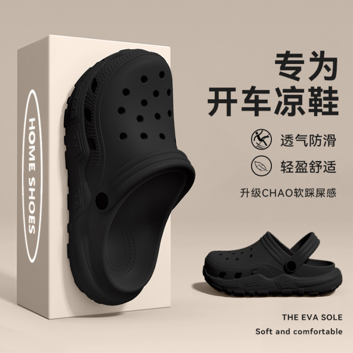 開車洞洞鞋男士夏季外穿2025新款厚底耐磨防滑防臭透氣兩穿涼拖男